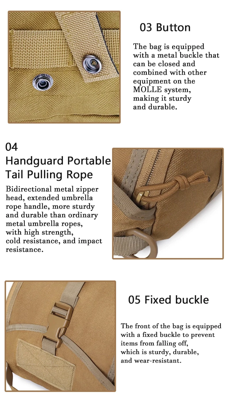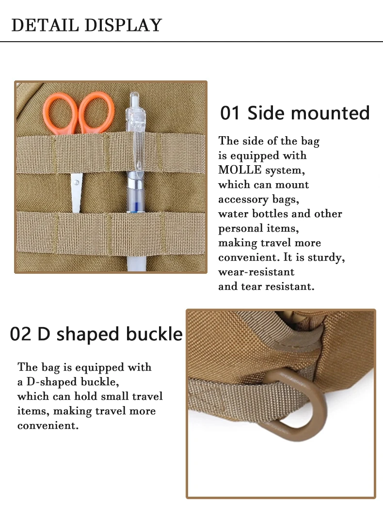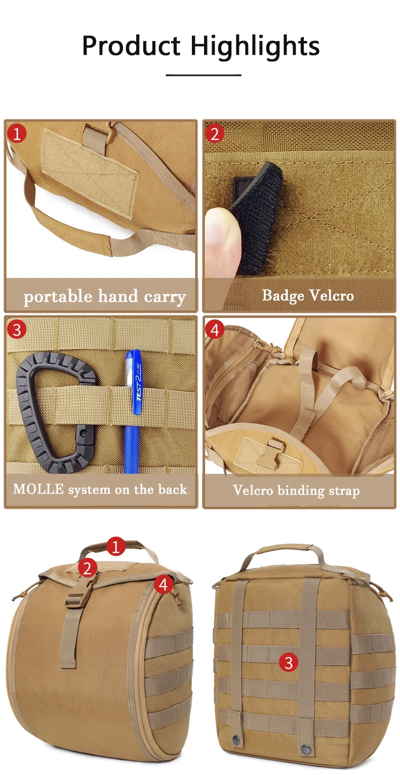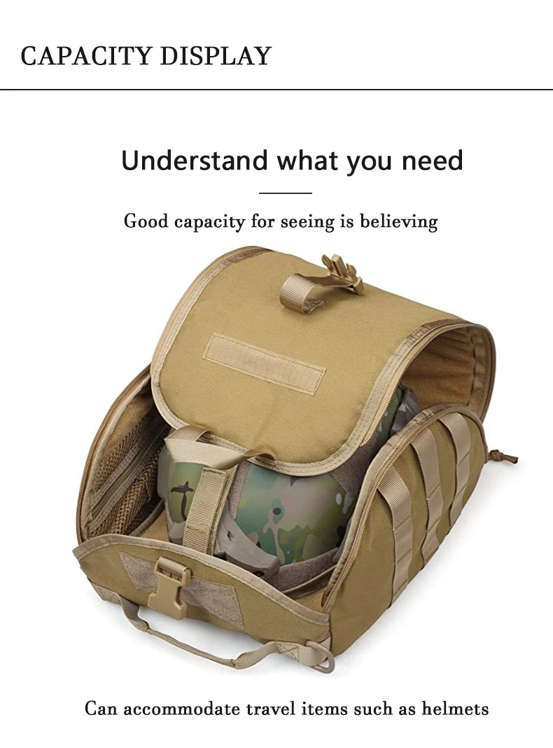 Portátil: con doble cremallera silenciosa y hebilla de liberación rápida, solo toma unos segundos ver fácilmente los artículos y recogerlos, bolsillo interior de malla para guardar otros equipos tácticos, como: riel de cámara para casco, linterna para casco, barras luminosas, etc.Sistema: las correas Molle se pueden fijar a un chaleco táctico, una mochila táctica o un panel Molle.