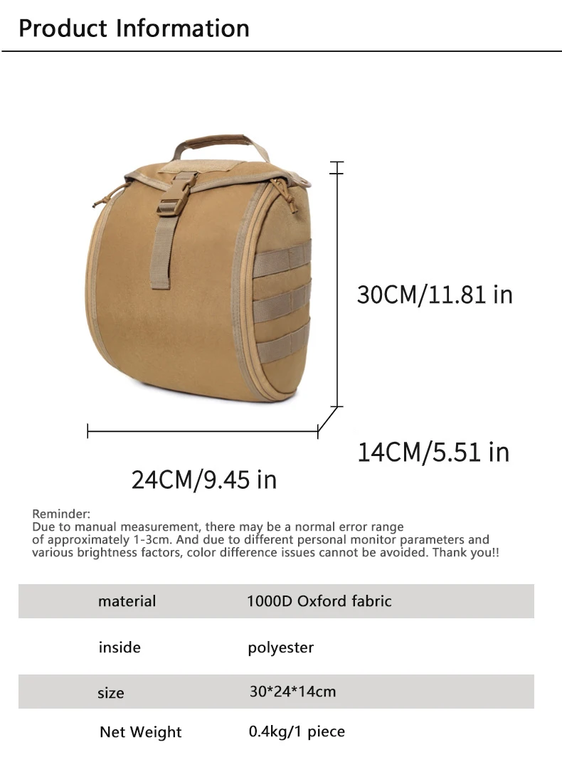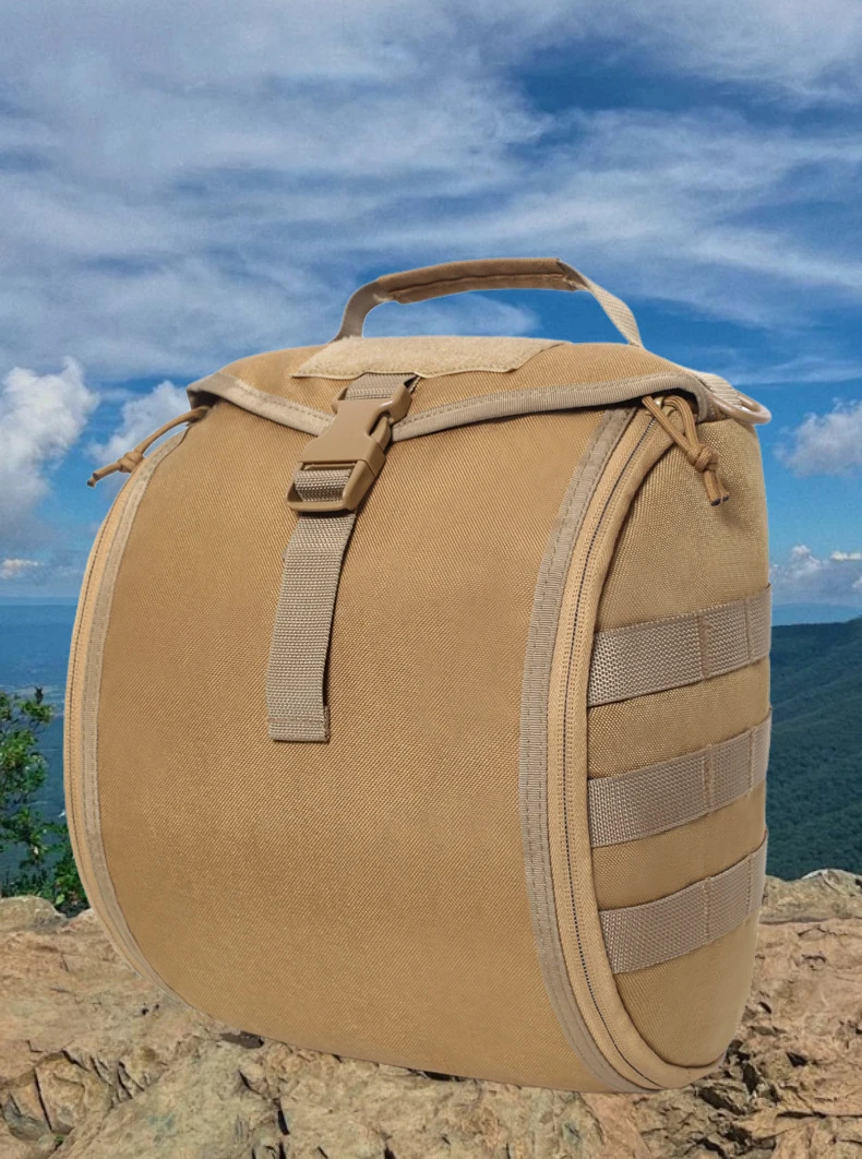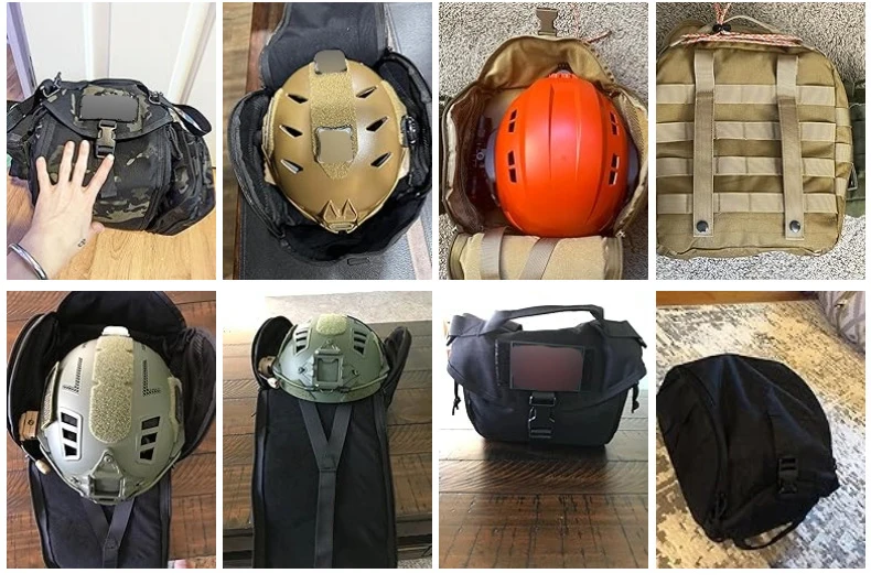 Material: nailon 1000D impermeable, resistente a la abrasión, forro interior engrosado para una máxima protección del casco contra rasguños, aplastamientos y caídas.