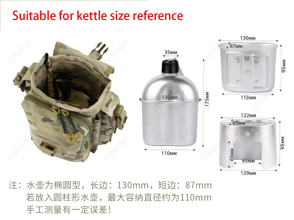 Bolsa táctica de caza al aire libre para colgar en el pecho, riñonera MOLLE, bolsa para hervidor, paquete de cubierta para taza de agua