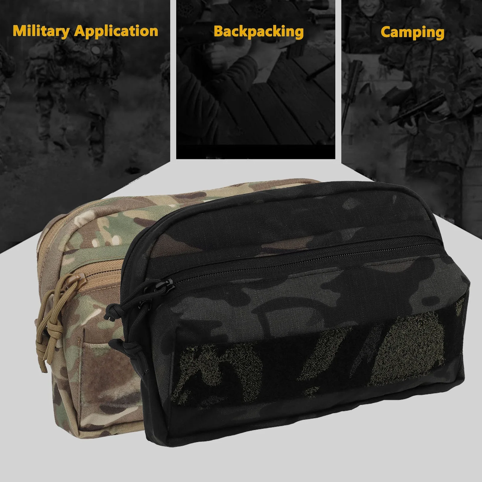 The Pouch is divided into two sections, with a strip of loop Velcro on the outside of the pouch for affixing identification and other patches.
