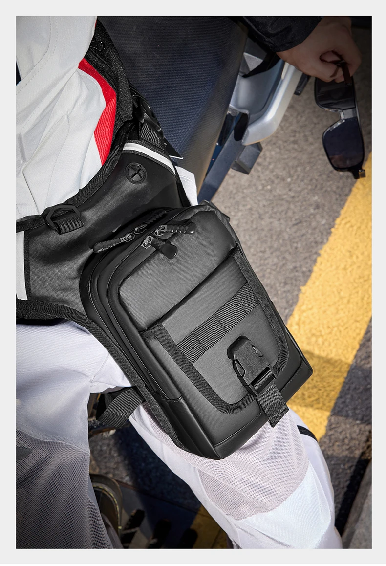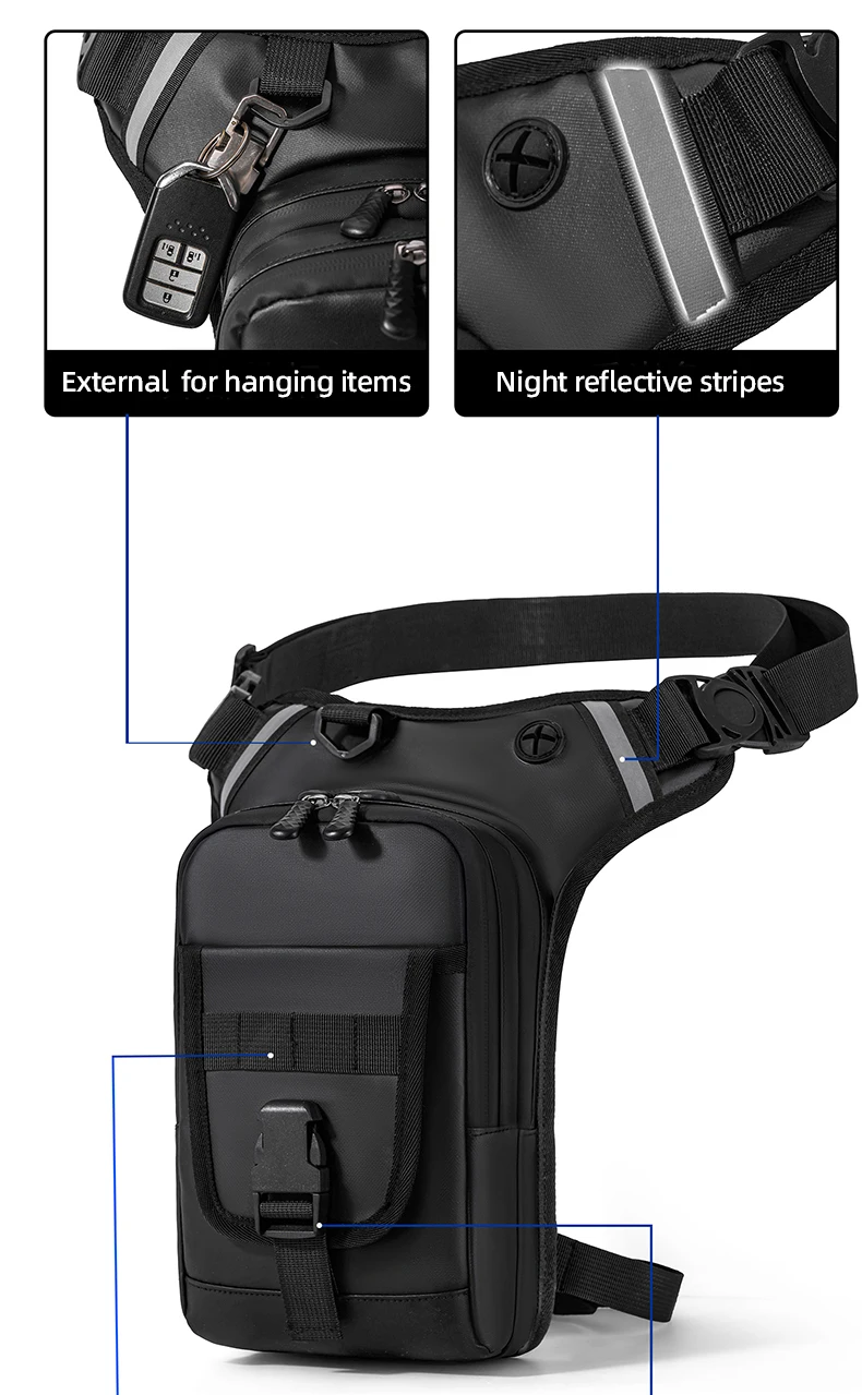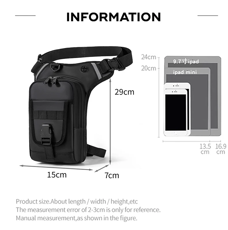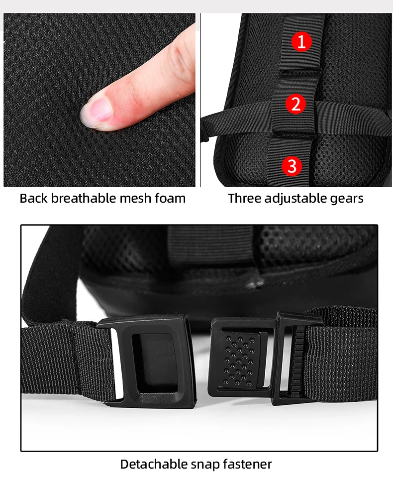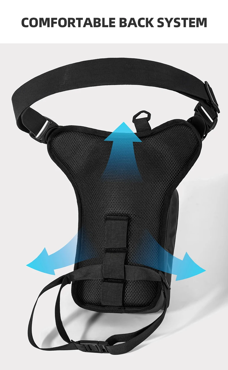 2.Detalles del producto: malla transpirable en la espalda, cinturón ajustable y correa para la pierna.
