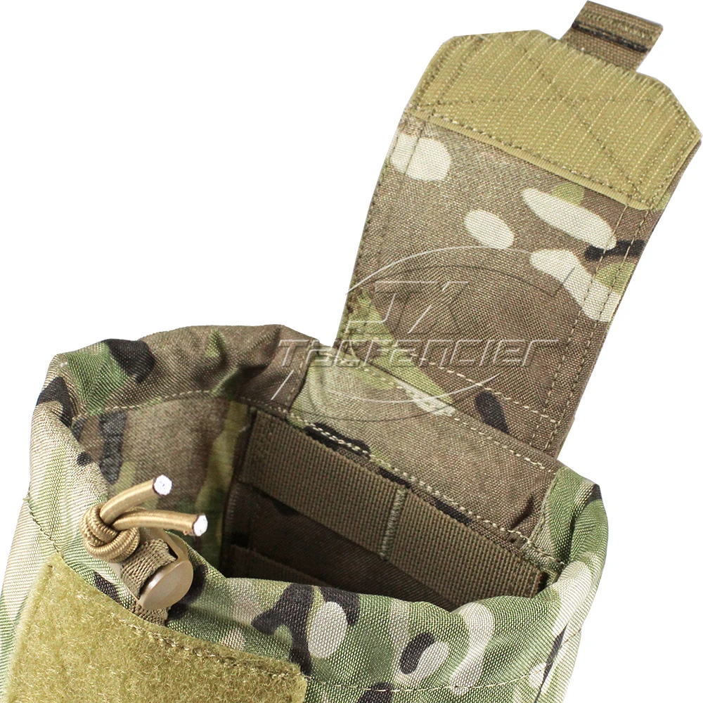 La bolsa táctica MOLLE está hecha de tela de nailon cordura 500D, que es muy liviana y duradera. Se puede enrollar cómodamente y guardar compatible con MOLLE. Se puede montar en un cinturón táctico o en un soporte de placa.