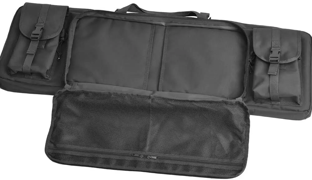 El estuche largo para rifle tiene divisor central para rifle Doble