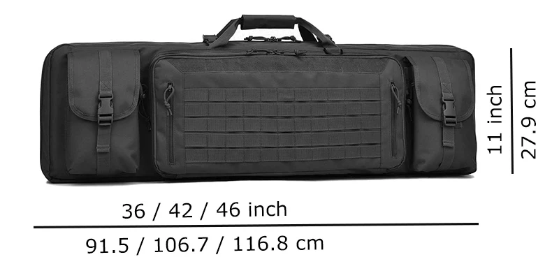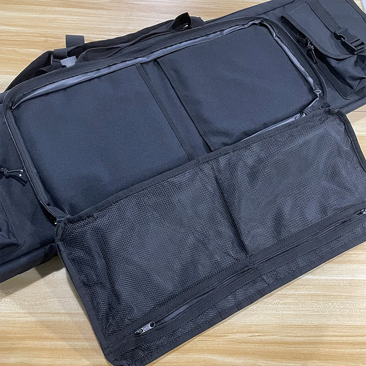 Nuestra bolsa de rifle con deslizadores de cremallera bloqueables en los dos compartimentos principales y tiradores de cremallera paracord para hacerlo simple. Diseño todo en uno.