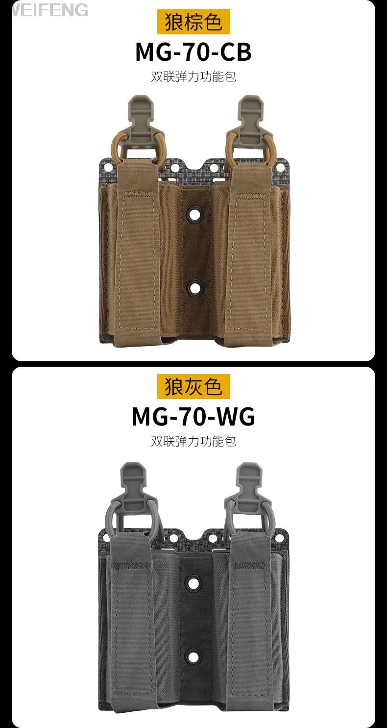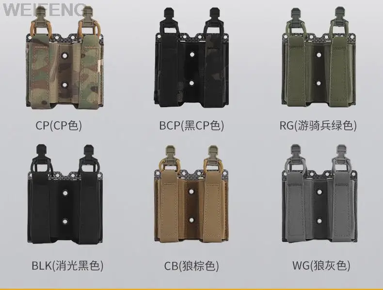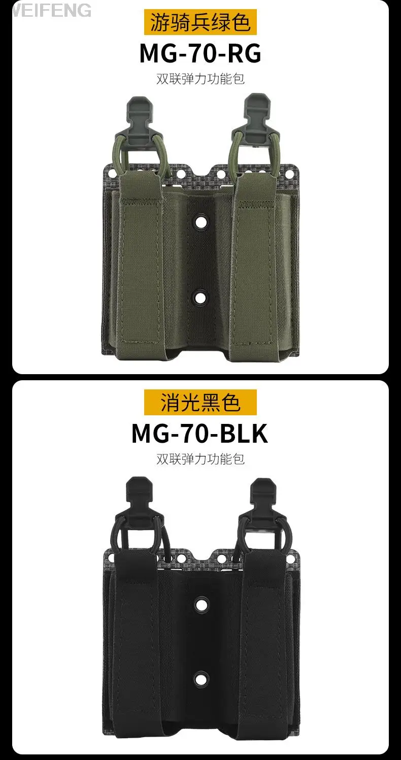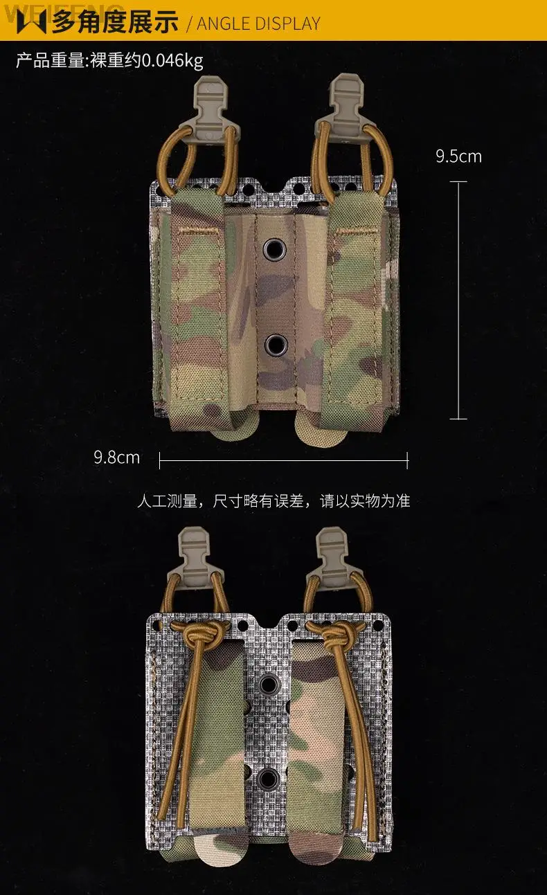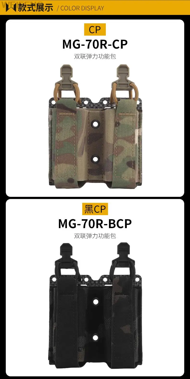 Nombre del producto: bolsa MAG elástica doble (pistola) Tamaño del producto: 10*10*2cm Peso neto del producto: 0.046KG Peso bruto del producto: 0.056KG Color del producto: negro, verde, marrón, CP, gris Material principal: Cordura El paquete incluye: 1 * bolsa MAG táctica