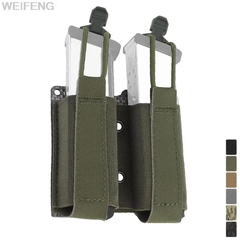Nombre del producto: bolsa MAG elástica doble (pistola) Tamaño del producto: 10*10*2cm Peso neto del producto: 0.046KG Peso bruto del producto: 0.056KG Color del producto: negro, verde, marrón, CP, gris Material principal: Cordura El paquete incluye: 1 * bolsa MAG táctica