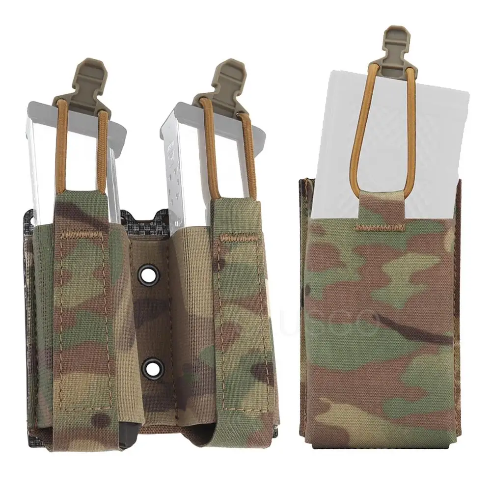 -Adecuado para revistas ordinarias de 9mm o extendidas, la tela elástica en ambos lados puede contener cualquier objeto de tamaño similar, como cuchillo, linterna y revista.