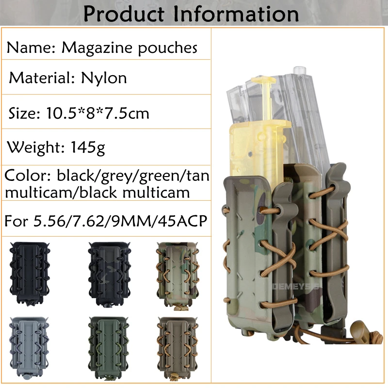 Bolsa táctica doble Mag para caza de Paintball, 5,56, 7,62, 9MM, 45ACP, MOLLE