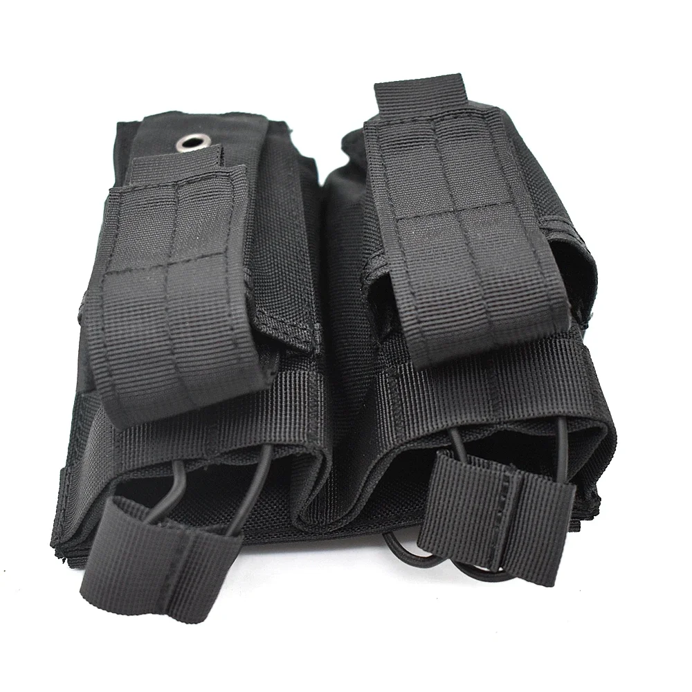 La bolsa doble tipo canguro está hecha de material de poliéster 1000D de grado para una mejor resistencia al desgarro y al desgaste.La bolsa para cargadores está reforzada y tiene doble costura en todos los puntos de tensión.