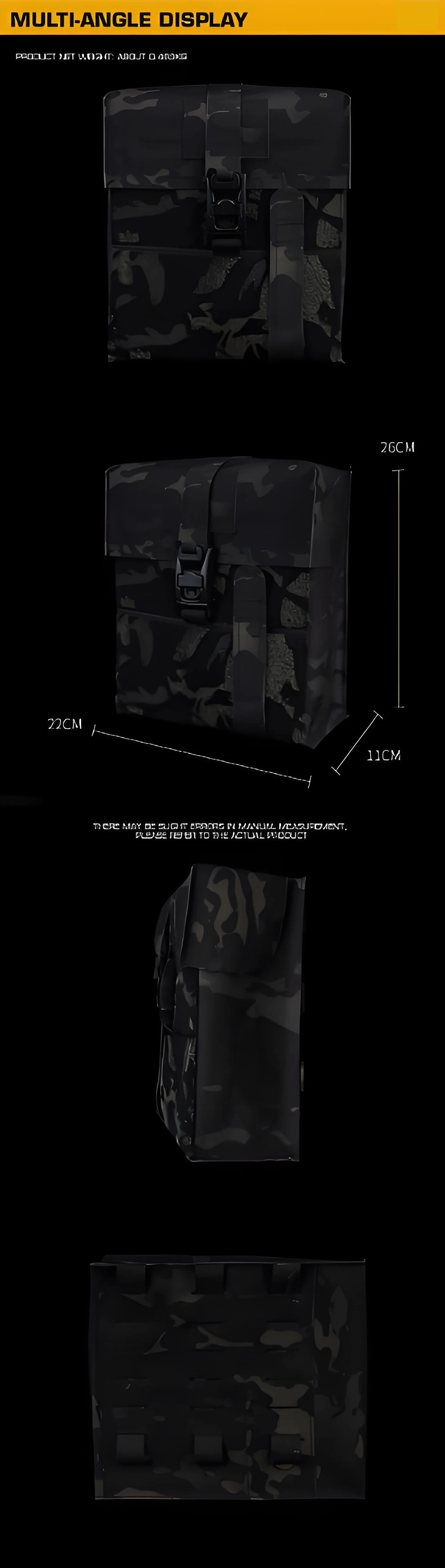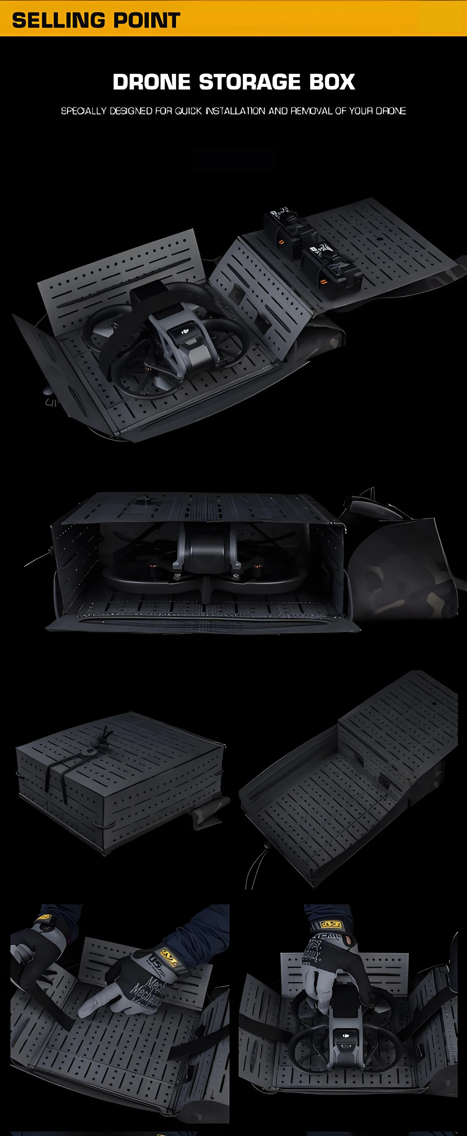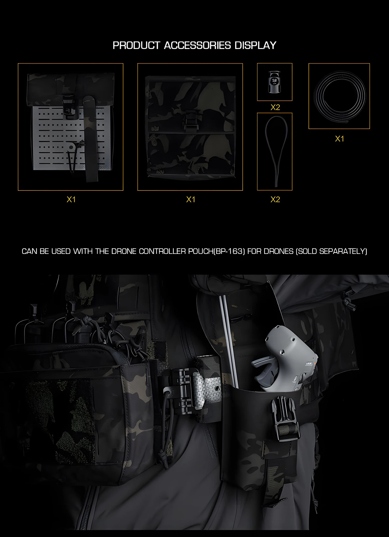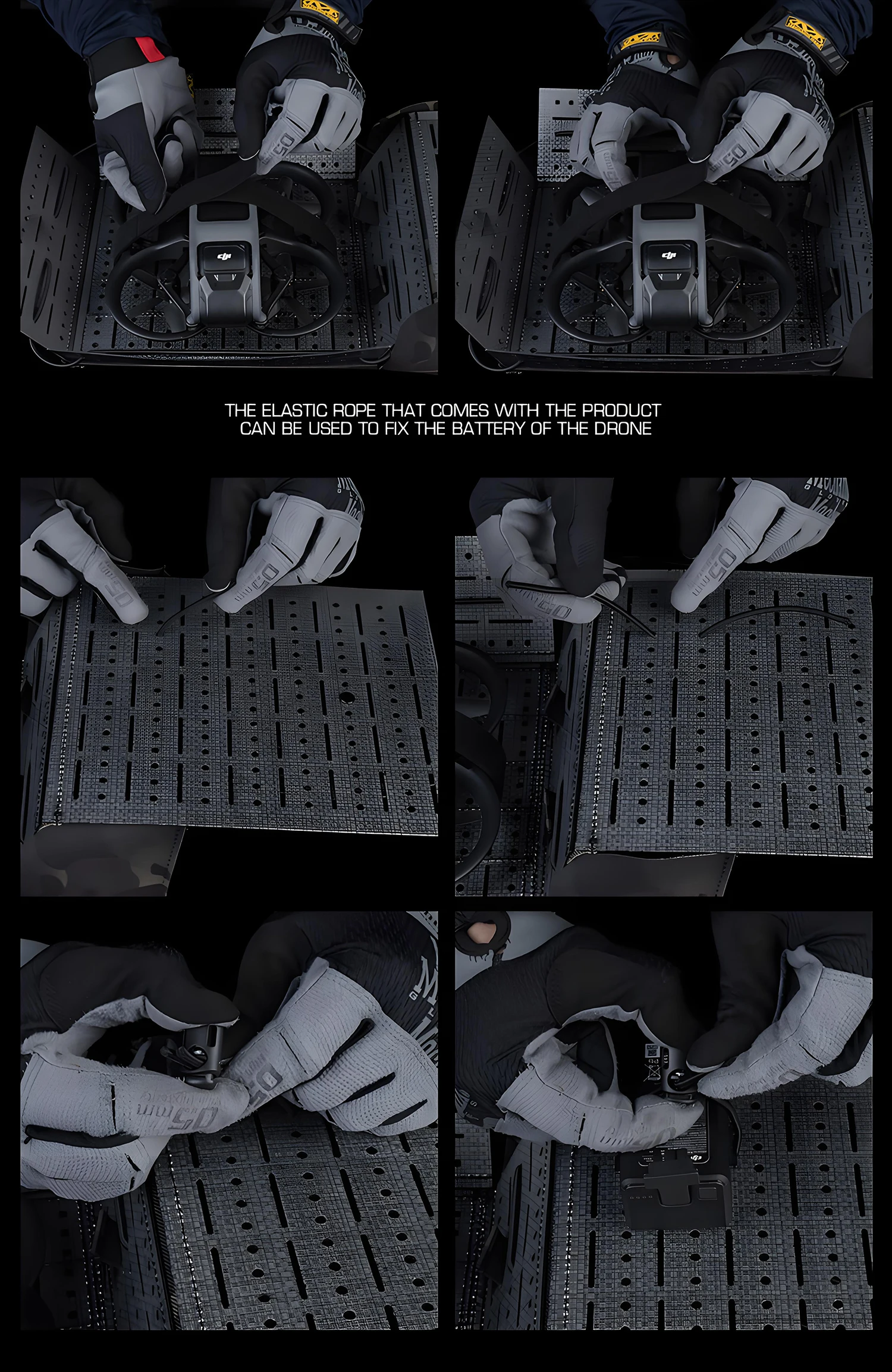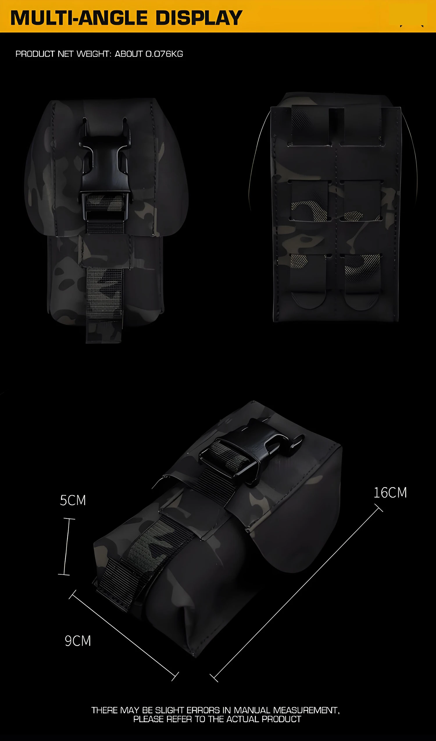 Descripción: Diseñada para una rápida implementación de drones en escenarios tácticos, la bolsa Fast Deploy para drones combina una durabilidad robusta con una organización inteligente.Su interior de diseño dividido cuenta con una caja interior extraíble para un almacenamiento seguro del dron y una bolsa exterior compatible con MOLLE para un acceso instantáneo durante las misiones.Con un peso de solo 0,463 kg (26x22x11 cm), esta bolsa se integra perfectamente con chalecos tácticos, mochilas o cinturones a través del montaje M SISTEMA, mientras que la hebilla de liberación rápida y el sistema de cierre mágico permiten la recuperación con una sola mano en segundos. Diseñada para operadores de drones tácticos y entusiastas del aire libre, la bolsa para controlador de drones ofrece almacenamiento seguro y portátil para DJI, FPV y otros controles remotos de drones.Con compatibilidad con correas MIL-SPEC MOLLE, esta bolsa compacta se fija fácilmente a chalecos tácticos, cinturones o mochilas para una rápida implementación.Su hebilla de liberación rápida de 2,5 cm garantiza un acceso instantáneo a su controlador durante misiones críticas, mientras que la resistente tela de camuflaje 500D resiste el desgaste y la intemperie. Aspectos destacados clave: • Diseño de doble compartimento: la caja interior protege los drones (por ejemplo, los modelos DJI Mavic/FPV), mientras que la bolsa exterior se monta mediante correas MOLLE/PALS. • Acceso rápido táctico: recupere los drones directamente de su mochila sin quitar equipo, ideal para airsoft, ejercicios militares o operaciones de emergencia. • Cuerda elástica y sujetadores mágicos: asegure las baterías y los controladores firmemente; Las capas interiores de gancho/bucle bloquean los componentes durante el movimiento. • Tela de camuflaje 500D: el material de grado militar resiste la abrasión, el agua y los daños causados por los rayos UV. • Transporte multiángulo: Opciones de montaje vertical/horizontal con correas reforzadas y anillos en D. • Ajuste exclusivo: el compartimento diseñado a medida sostiene cómodamente la mayoría de los controladores de drones estándar. • Soporte M SISTEMA: Se integra perfectamente con el equipo táctico equipado con correas MOLLE/PALS. • Ligero y compacto: pesa sólo 0,06 kg (16x9x5 cm), minimizando el volumen durante las operaciones. • Acceso con hebilla frontal: recupere o guarde su controlador en segundos con una sola mano. • Transporte multiángulo: úselo vertical u horizontalmente mediante correas ajustables para un montaje versátil.
