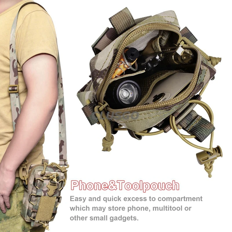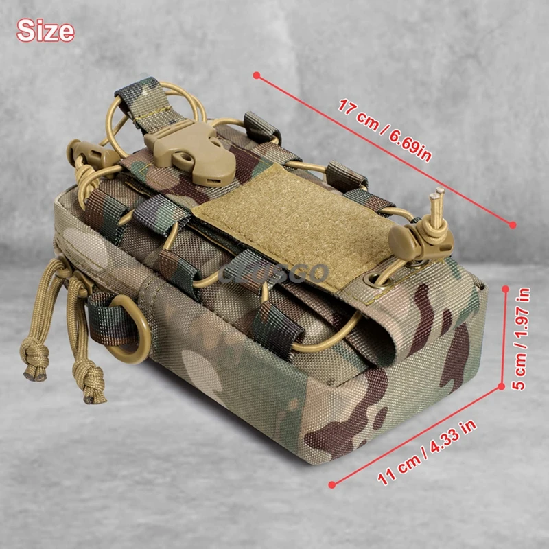 【Tamaño mini】Tamaño de la bolsa del teléfono móvil: 6,7*4,3*2 pulgadas/17*11*5cm, sistema Molle en la parte posterior. Se puede unir a una mochila táctica, chaleco de combate, cinturón u otro equipo táctico como una bolsa exterior adicional o llevarlo como una bolsa normal para sujetar los engranajes esenciales. También se puede utilizar como una bolsa médica, que puede almacenar sus pequeños suministros de primeros auxilios para exteriores. Con tamaño pequeño para facilitar su transporte.