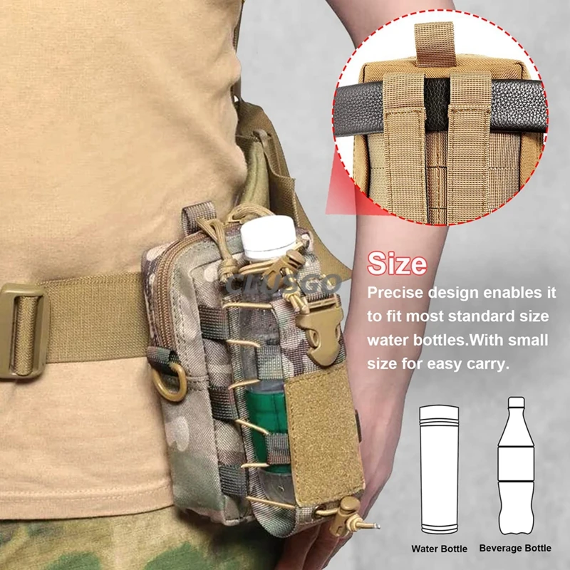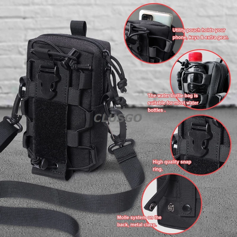 【Almacenamiento múltiple】El diseño único de la funda del teléfono dos en uno y la funda de la botella de agua, el exceso fácil y rápido al compartimento que puede almacenar Teléfono, multiherramienta u otros dispositivos pequeños. La bolsa para botellas de agua es adecuada para la mayoría de botellas de agua y se puede ajustar según el tamaño de la botella. También está diseñado con un botón de liberación rápida para sacarlo fácilmente. Gancho y lazo de sujeción en la parte delantera.