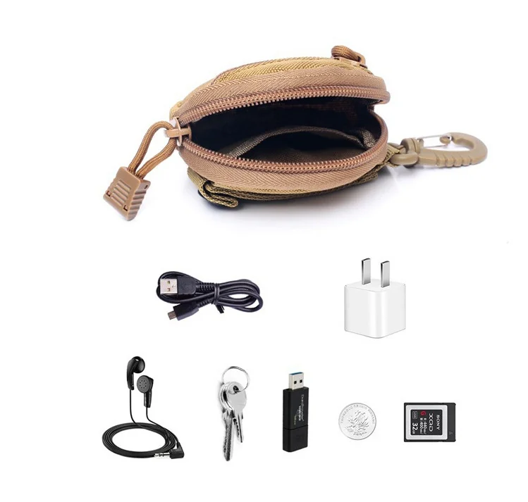 Bolsa táctica EDC, Mini cartera para llaves, monederos para hombre, bolsa de bolsillo para monedas con gancho, riñonera para caza y Camping