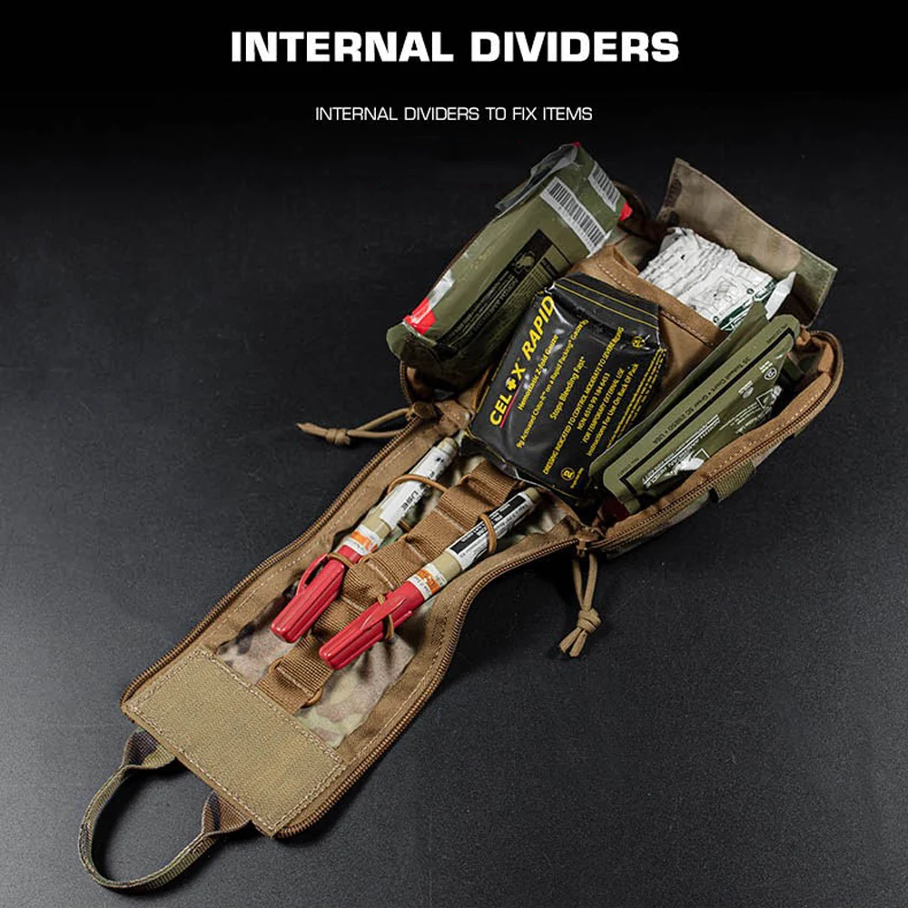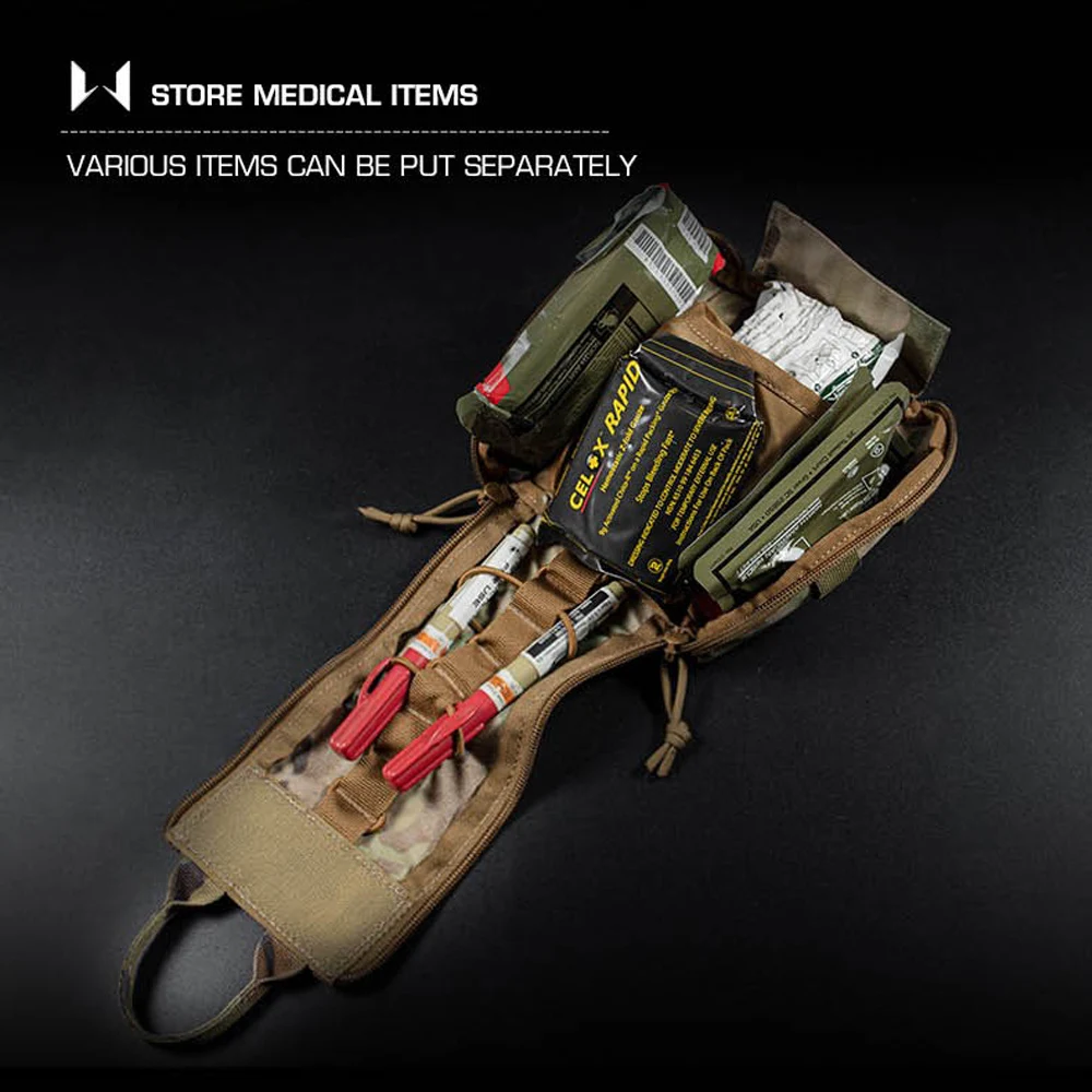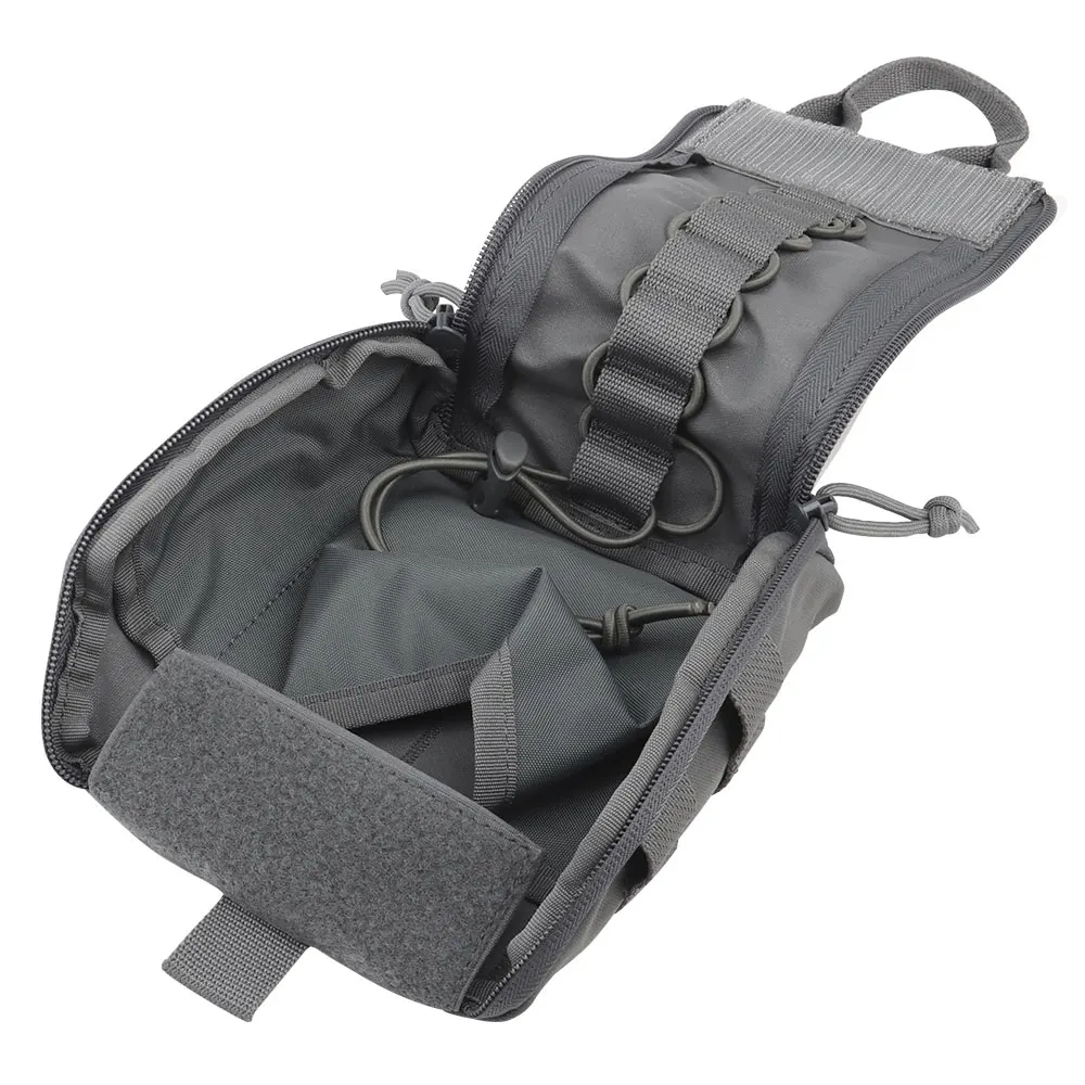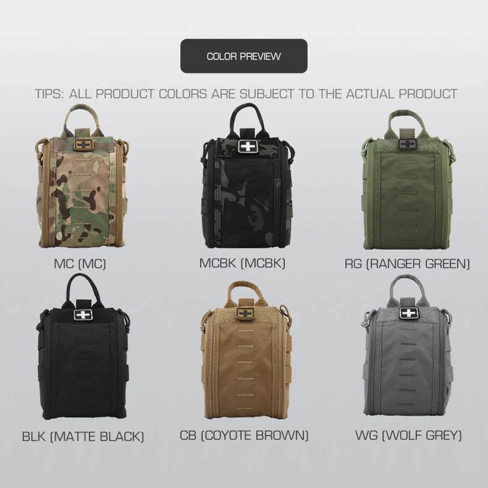 Nombre del producto: Paquete de primeros auxilios de liberación rápida A Número de artículo.:BP-85 Tamaño del producto: 27*16*3CM Peso neto del producto: 0,143 kg. Peso bruto del producto: 0,158 KG Color del producto: negro mate/gris lobo/verde Ranger/marrón coyote/MC/MCBK Material principal: tela Cordura, cremallera YKK. Escena aplicable: deportes al aire libre, juegos tácticos de airsoft, etc.