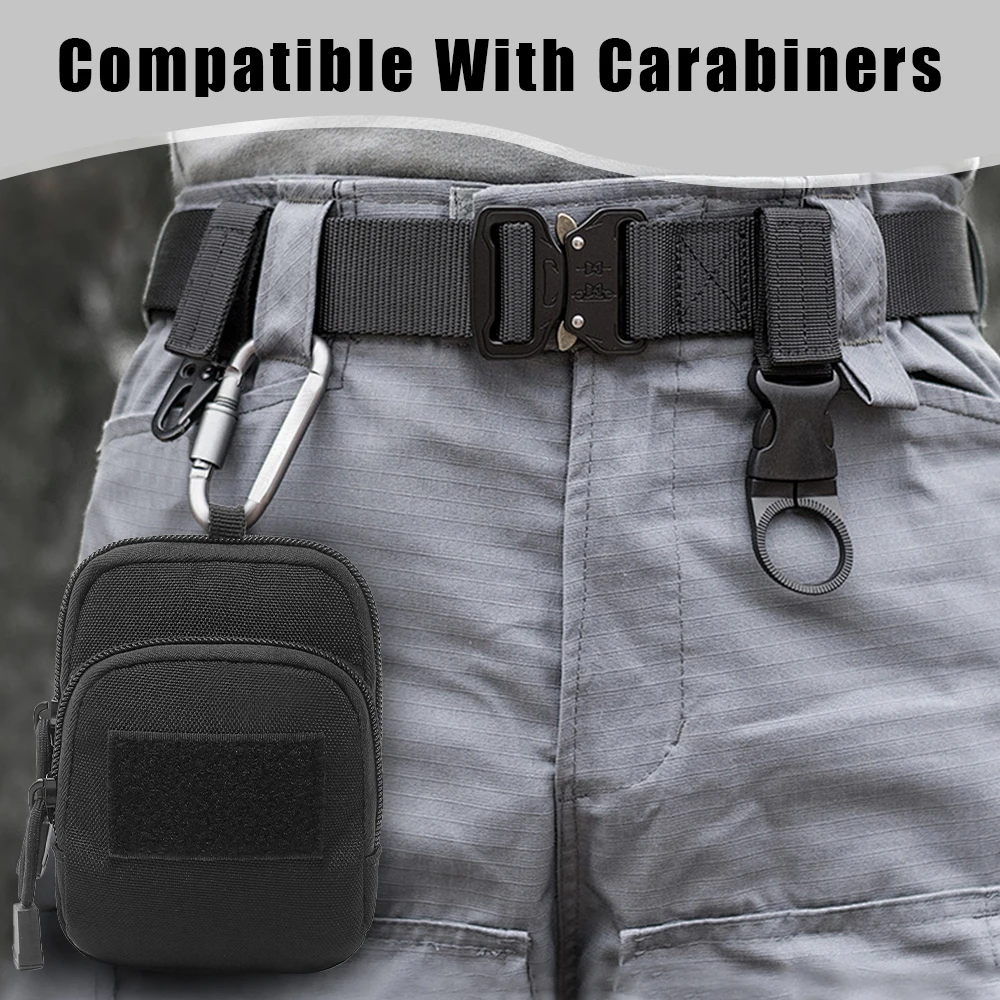 3. 【Sistema compatible con MOLLE】 Fije fácilmente la bolsa a cinturones, mochilas u otros equipos usando la correa MOLLE integrada, con opciones adicionales para colgar el mosquetón.