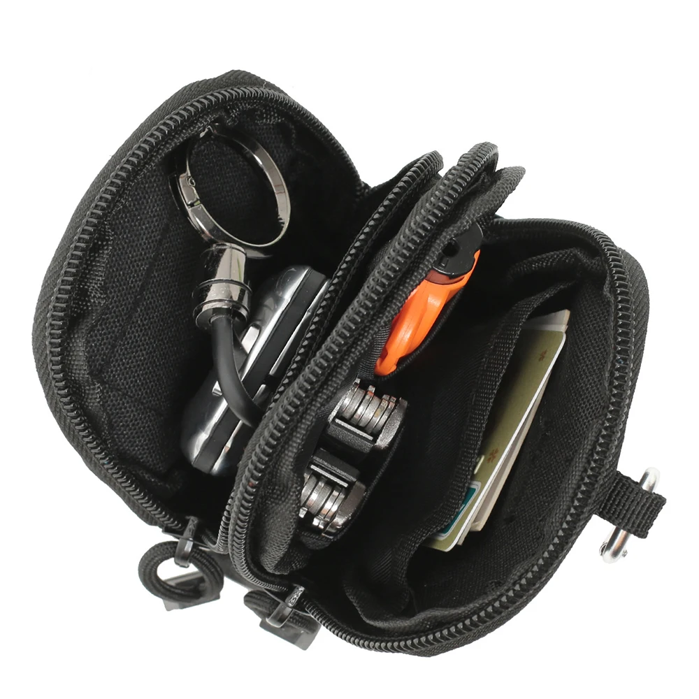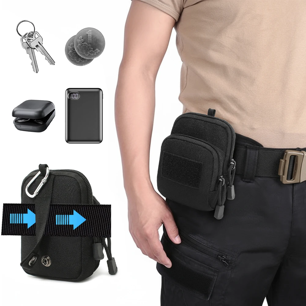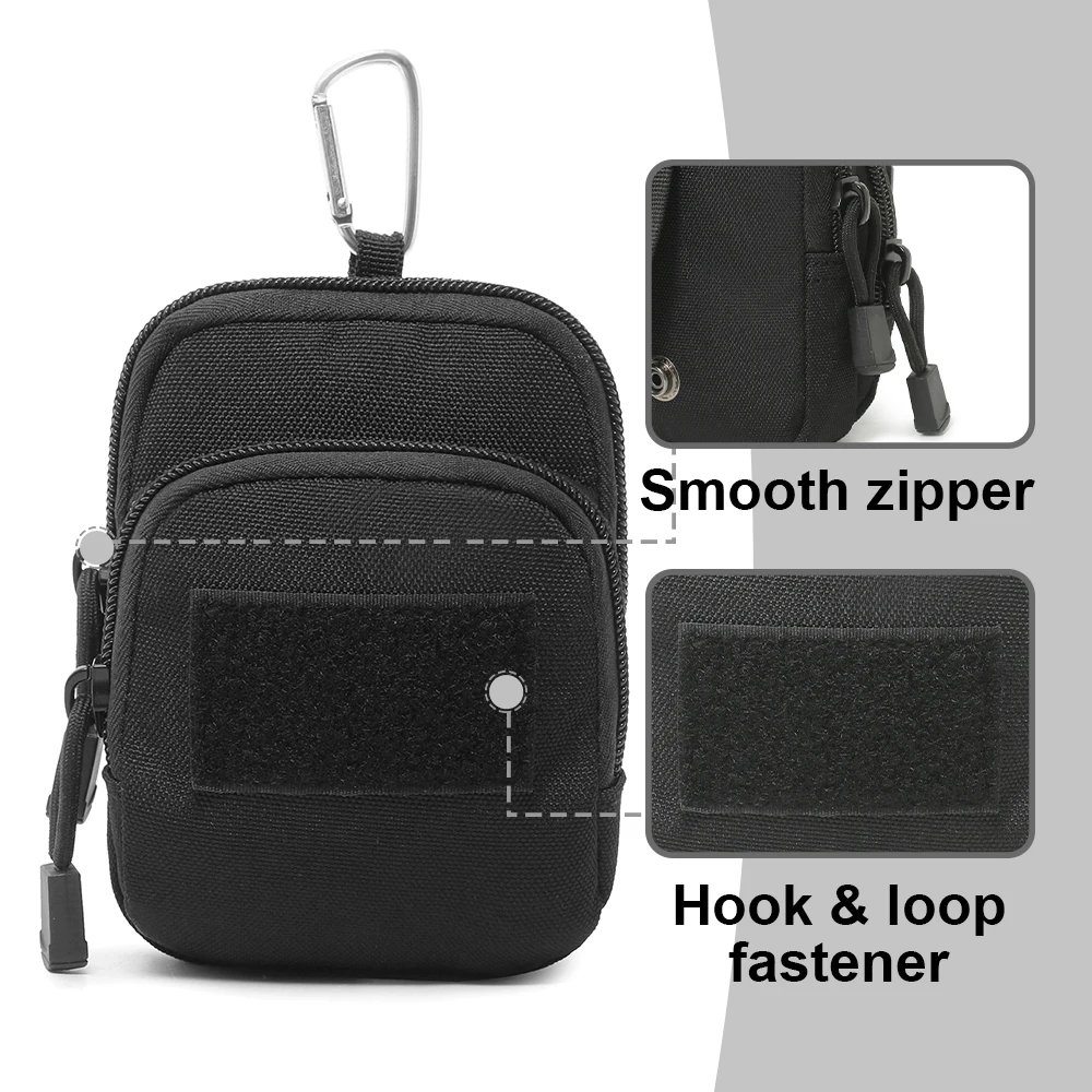 2. 【Múltiples compartimentos con cremallera】 Incluye un bolsillo principal y almacenamiento frontal para organizar ordenadamente su teléfono, llaves, monedas y herramientas, manteniendo los elementos esenciales seguros y accesibles.