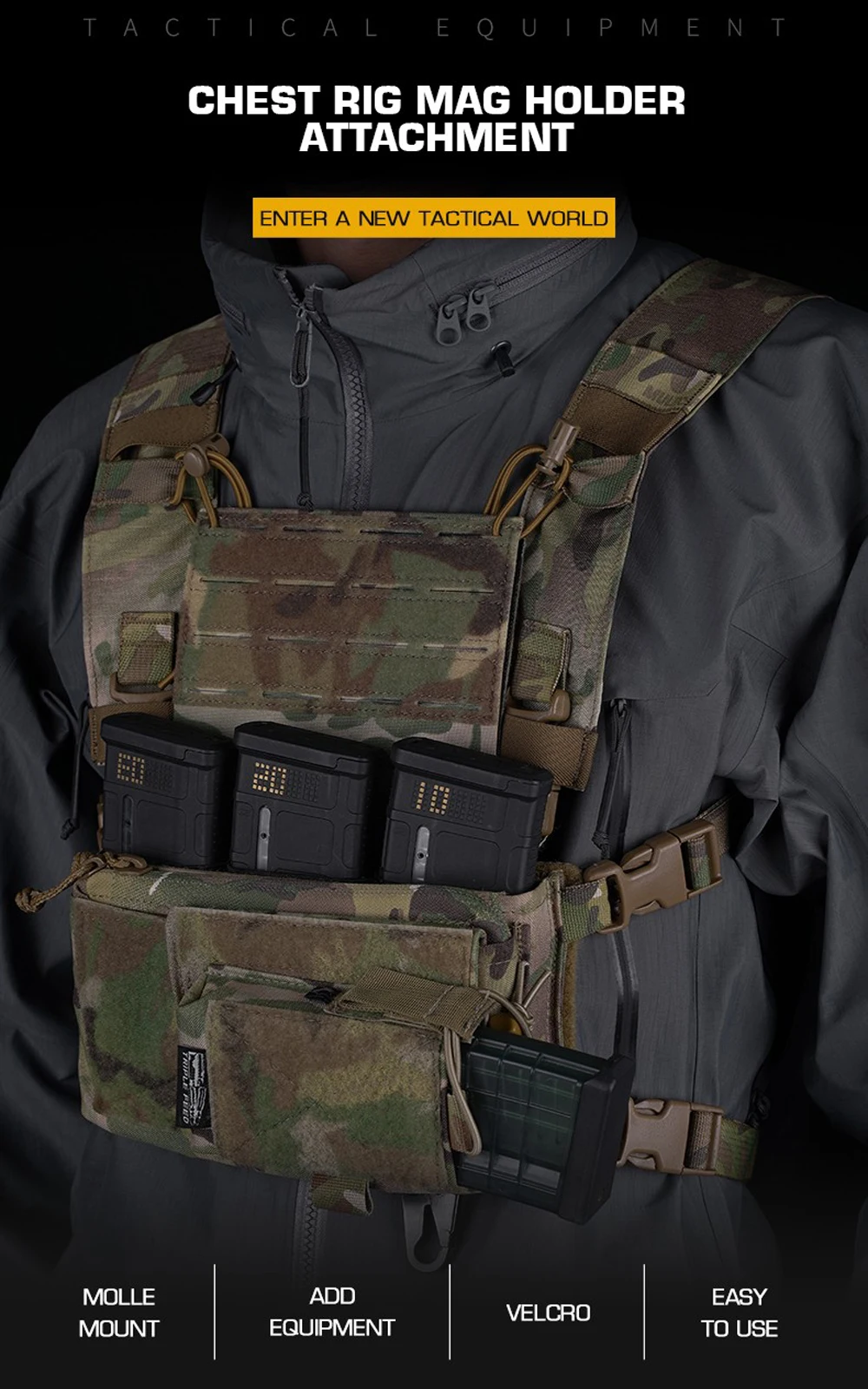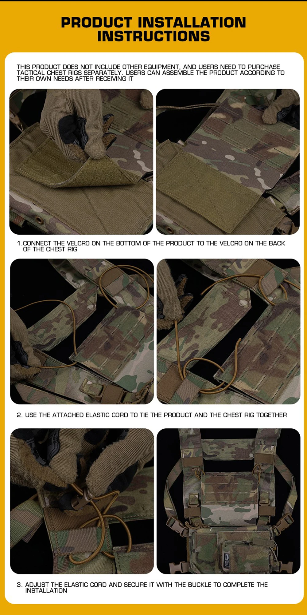 Me gustó el producto, aunque aún no he intentado conectarlo a MOLLE ya que no era necesario, así que no puedo evaluar eso. Por lo demás, me gustó todo; velcro de camuflaje, inserto rígido en el interior. Y lo más importante, logré "combinar" un chest rig de DM-Gear, una bolsa de IDOGEAR y un panel de pecho de COLINLOV. Resultado en fotos.