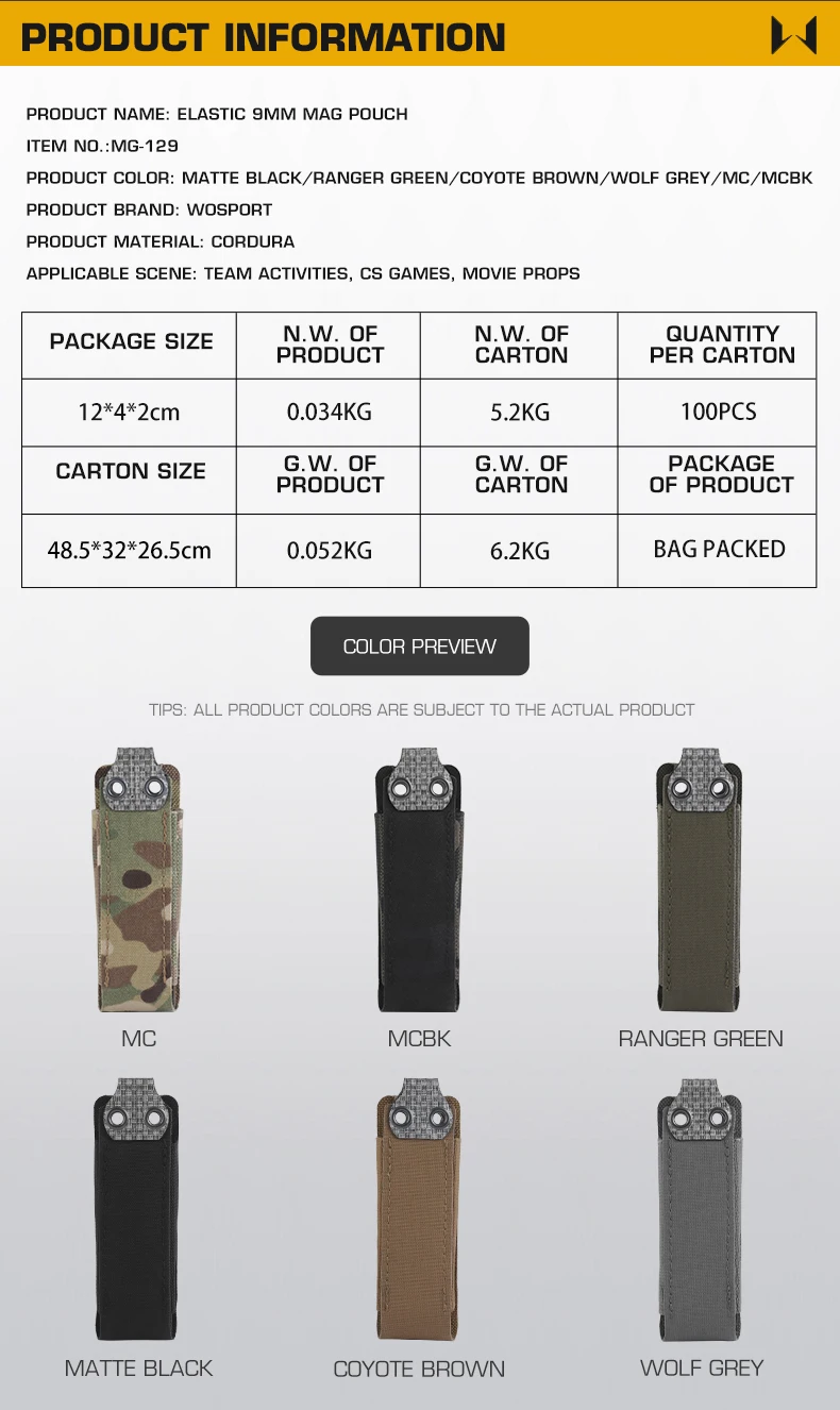 Bolsa táctica elástica suave de 9MM con Clips MOLLE, soporte magnético individual de ajuste de altura para accesorios Airsoft de caza