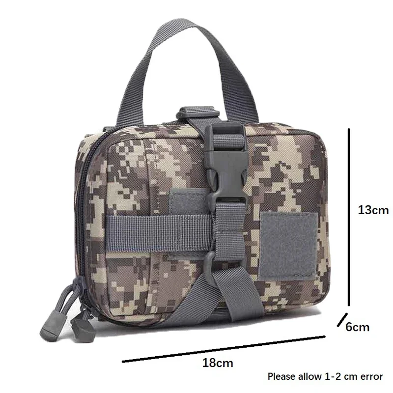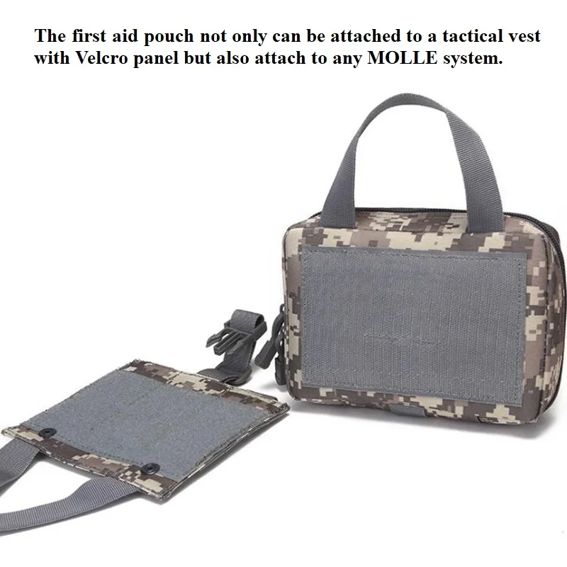 -El kit tiene un asa que facilita su transporte, con sistema de módulo molle, se puede colgar en el equipo con módulo molle, chaleco táctico, mochila, cinturón, etc.