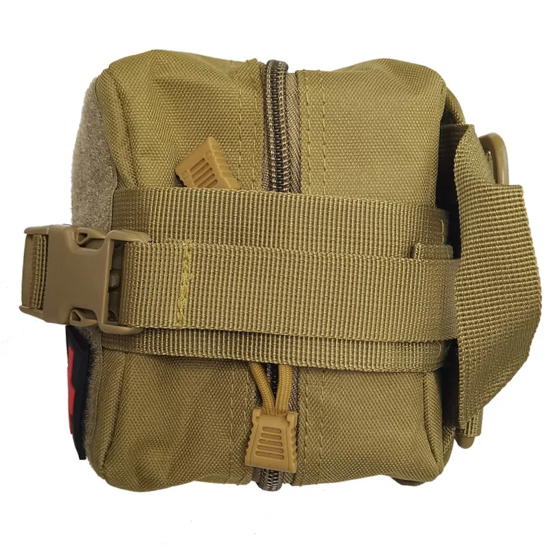 Característica:Diseño Molle, puede caber en chalecos de combate, cinturones, bolsos y otros equipos con cierre de cremallera, se puede abrir completamente, tiene cintas pequeñas en el interior, artículos fáciles de arreglar, tamaño pequeño, fácil de transportar y fácil de usar.