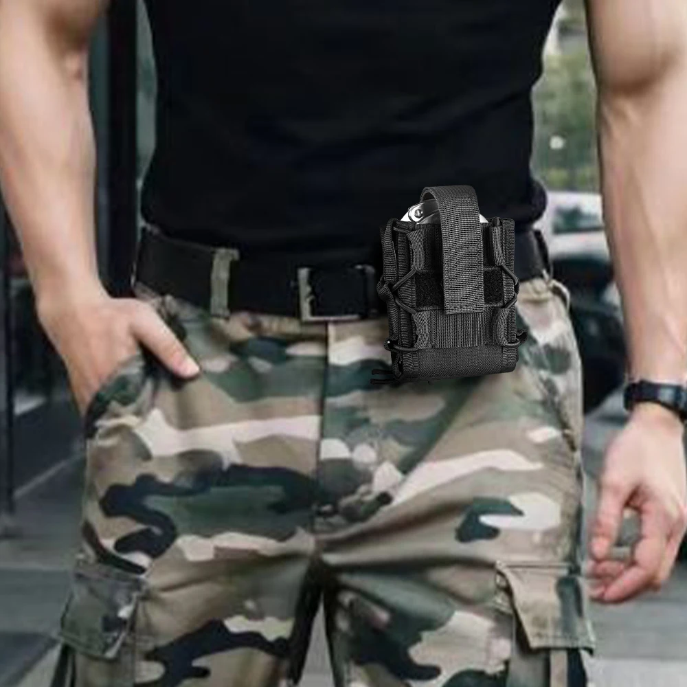 2. 【Estilo MOLLE clásico】 La bolsa para esposas está diseñada para profesionales.La correa elástica trasera es compatible con el sistema Molle/PALS, varios cinturones tácticos y chalecos en las batallas diarias y se adapta fácilmente a su carga táctica.Se puede montar en cinturones de hasta 2"/5 cm de ancho.