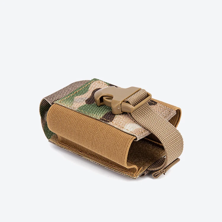 Altura ajustable Cerrado con hebilla de alta calidad. Compatible con MOLLE/PALS Cuenta con tejido elástico en ambos lados. Puede almacenar varios tipos de flashbang, linternas tácticas, silenciadores, etc.(NO incluido)