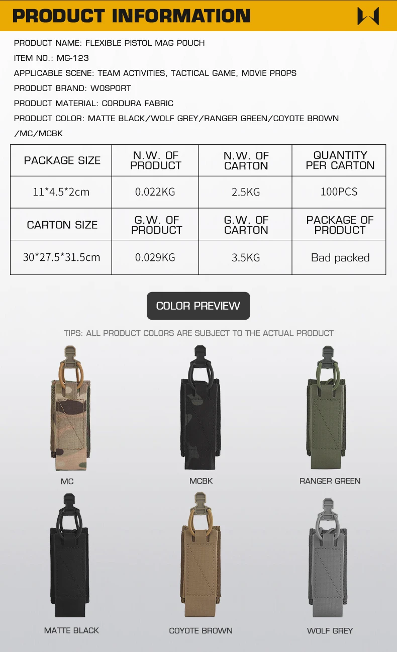Bolsa táctica Flexible de 9mm para pistola, sistema Molle, bolsa de cintura individual tipo bala, revista de liberación rápida, funda Airsoft para caza, equipo
