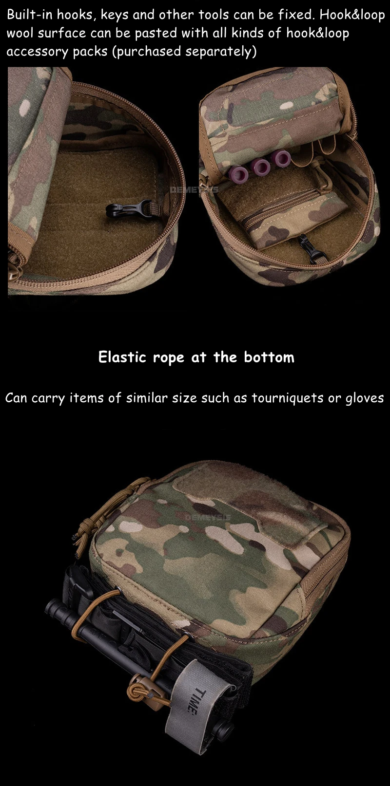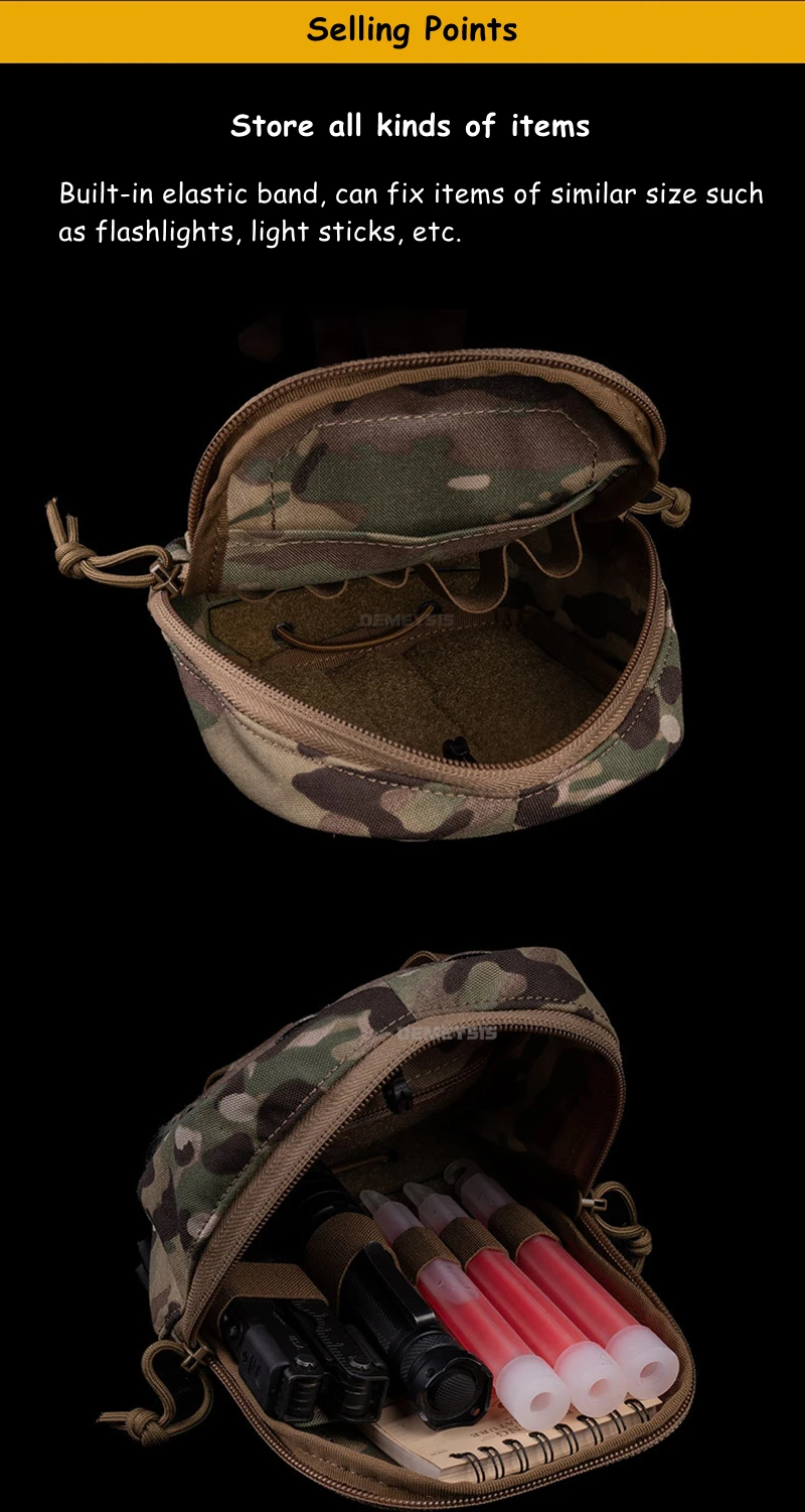 🎒Dual Storage– Elastic bands (top) + ropes (bottom) for flashlights/tourniquets