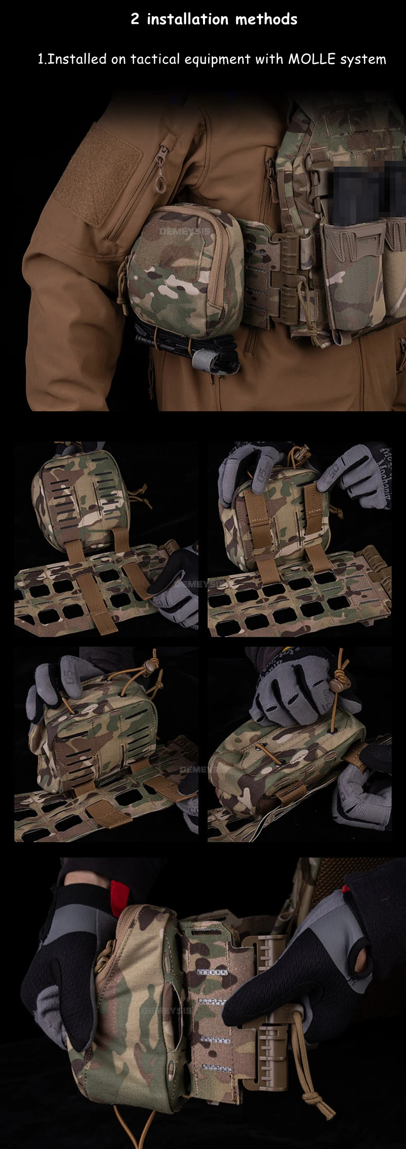 ⚡2-Way Mount– MOLLE system or ≤5cm belts