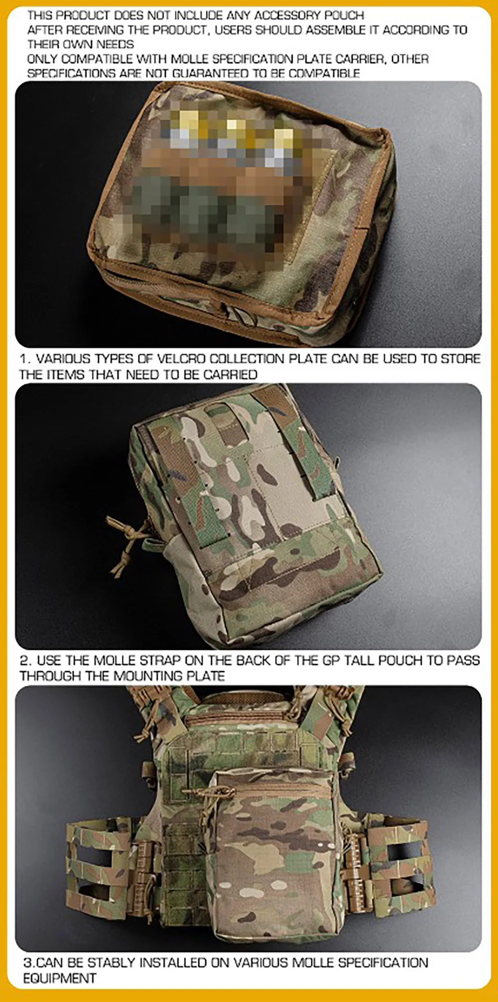 Bolsa táctica GP cuadrada para artículos diversos, sistema MOLLE, chaleco táctico con cremallera, bolsa con sello de cintura, bolsa de accesorios para cinturón