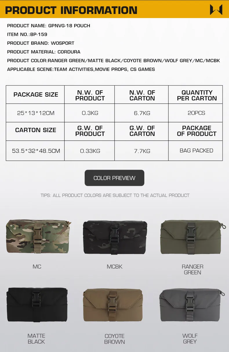 Bolsa de almacenamiento para visión nocturna, soporte MOLLE GPNVG-18 para accesorios de caza de juegos CS