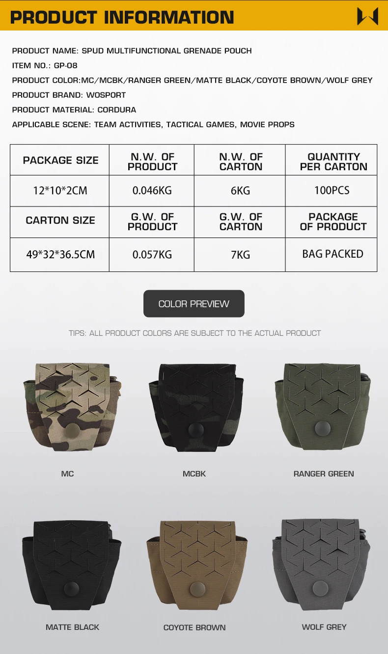 Bolsa multifuncional SPUD de dos usos con correas MOLLE para accesorios de cazaInformación del producto: