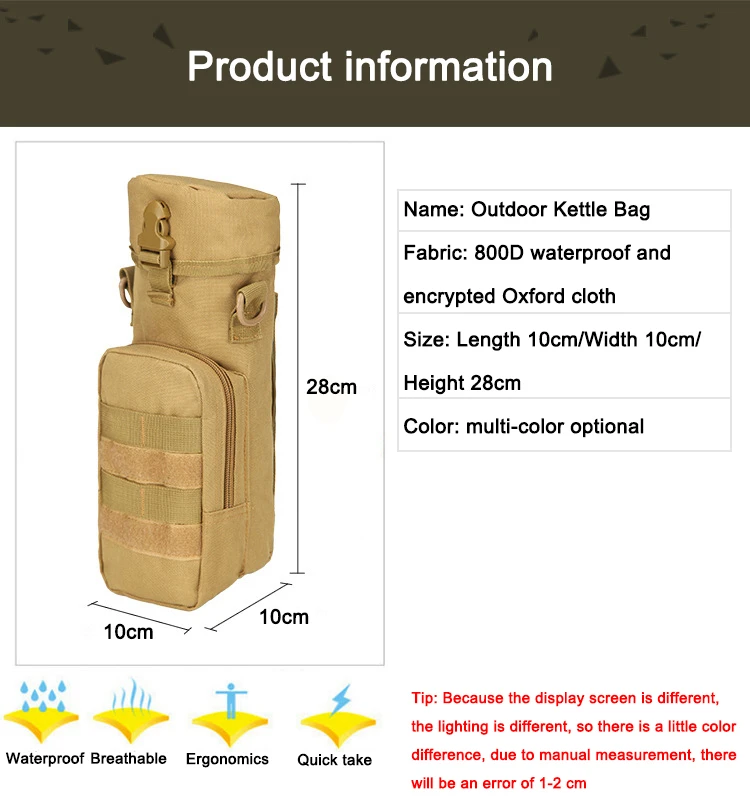 ●La bolsa para botella de agua está diseñada para transportar su botella de agua a través del sistema Molle.