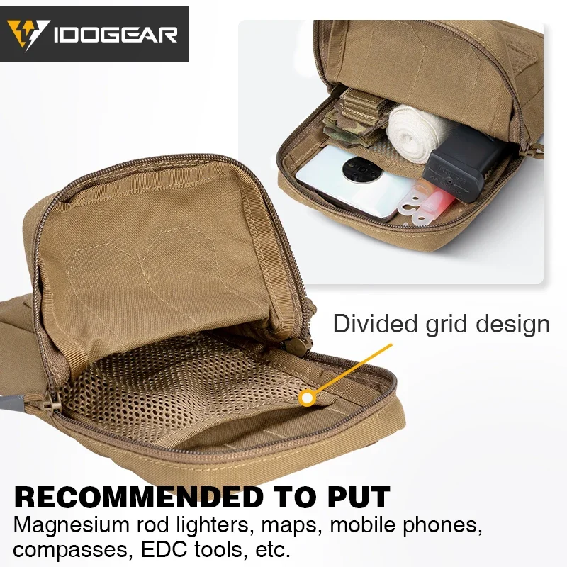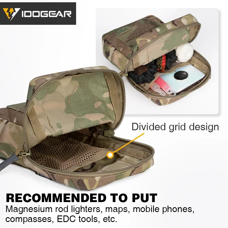 IDOGEAR Bolsa táctica MOLLE Bolsa de utilidad vertical Bolsa para artículos diversos con corte láser
