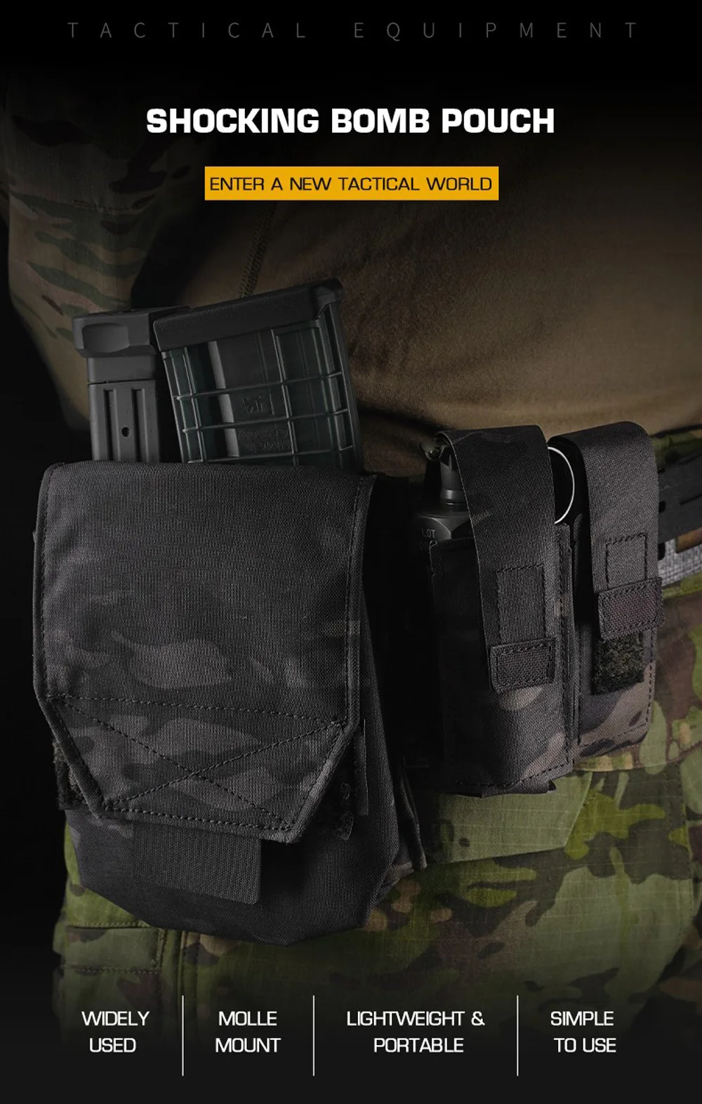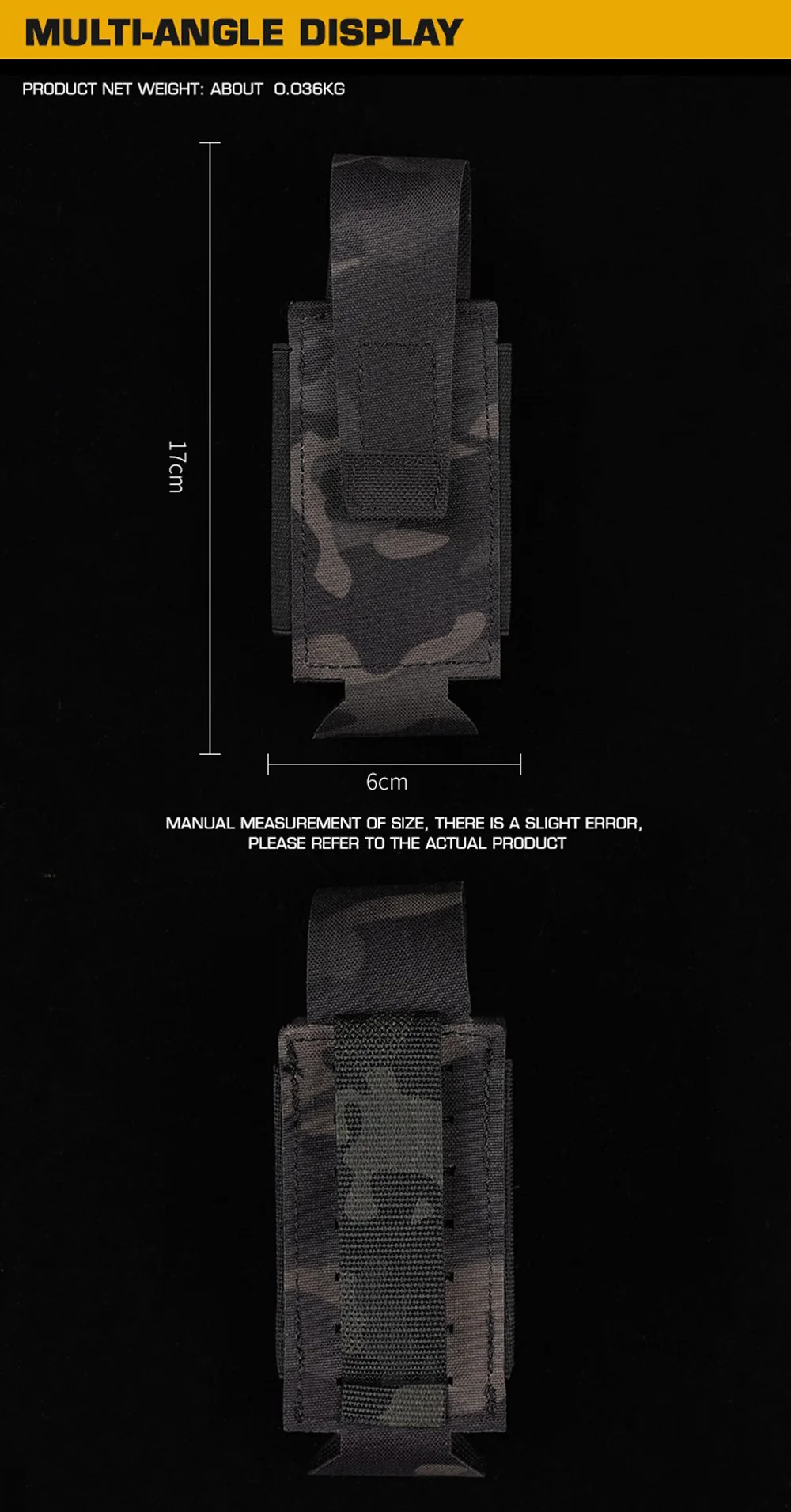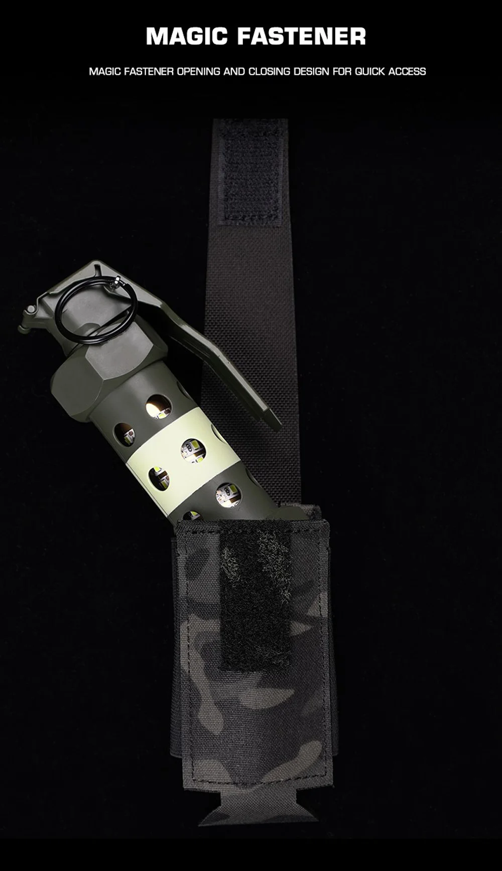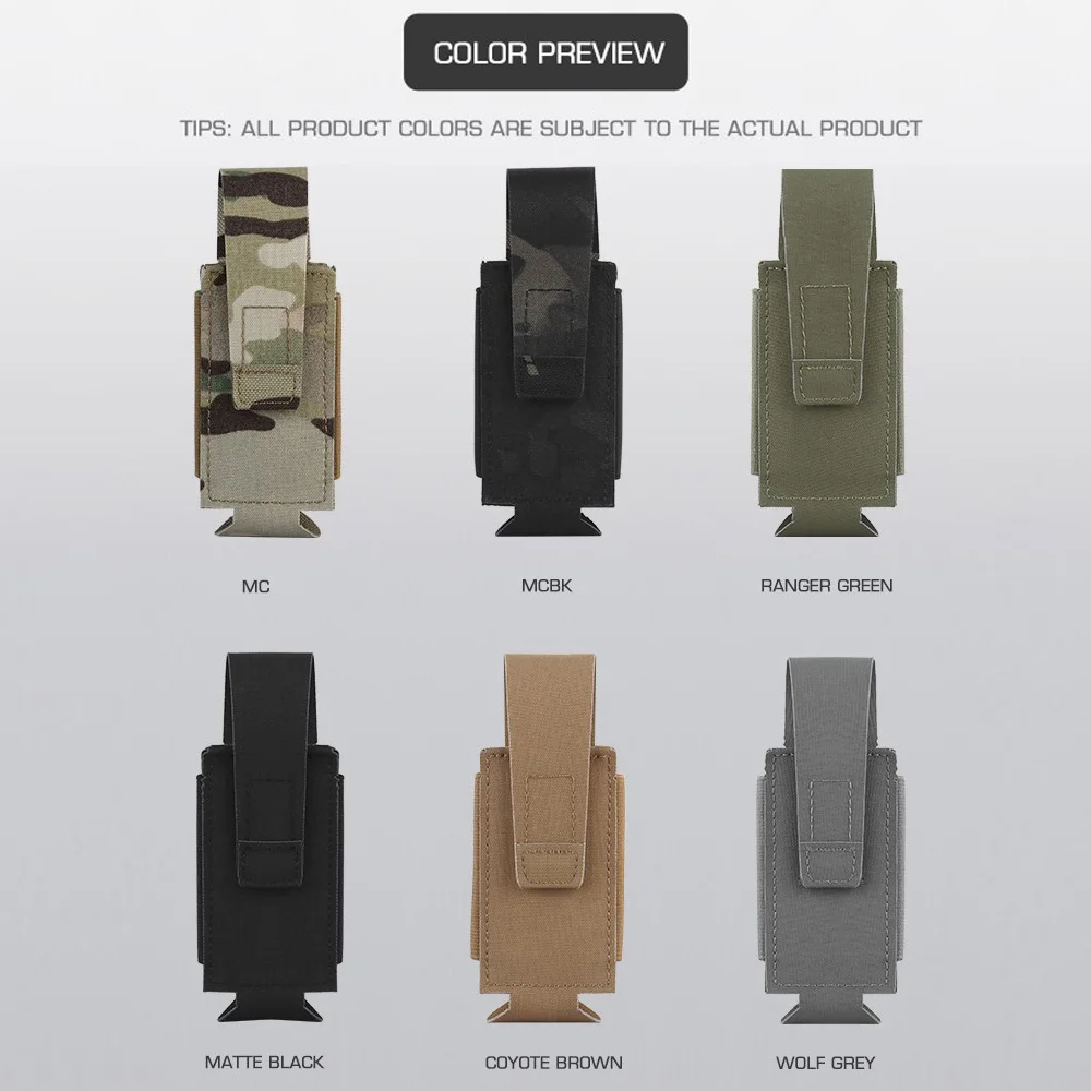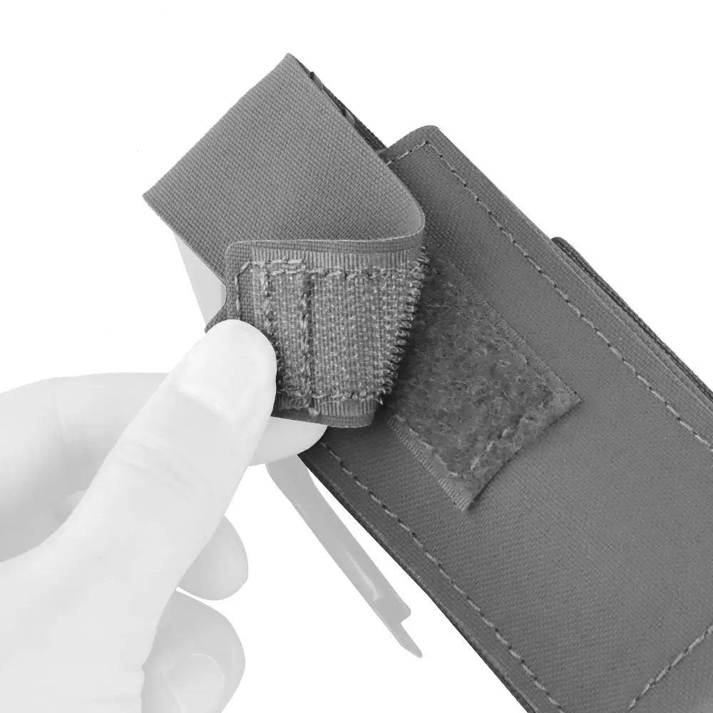 Nombre del producto: bolsa para bomba impactante Número de artículo.:GP-03 Tamaño del producto: 16*7,5*2 cm Peso neto del producto: 0,036 kg Peso bruto del producto: 0,037 kg Color del producto: negro mate/gris lobo/verde Ranger/marrón coyote/MC/MCBK Material principal: tela Cordura Escena aplicable: caza, deportes al aire libre y otros accesorios tácticos de atletismo Airsoft CS, etc.