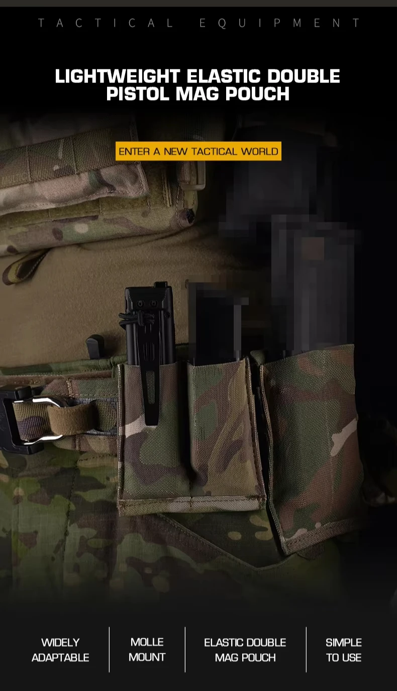 Bolsa táctica ligera elástica Molle doble para pistola Mag, soporte rápido para revistas de pistola para 9mm.45.40, bolsa para pistola Mag