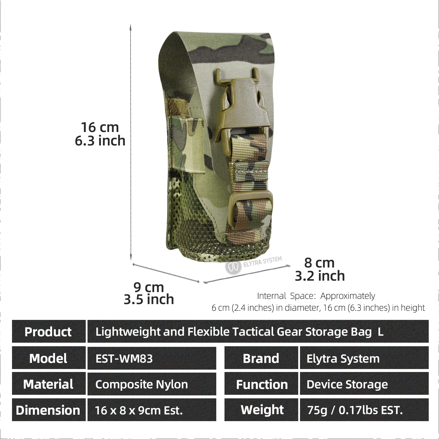 Presentamos nuestra bolsa de almacenamiento liviana y flexible, disponible en tres tamaños para adaptarse a la mayoría de los equipos tácticos modernos.Con hebillas desmontables y estructuras de correas, incluso puedes ocultar la cubierta frontal dentro de la bolsa, transformándola en una configuración de extracción rápida.