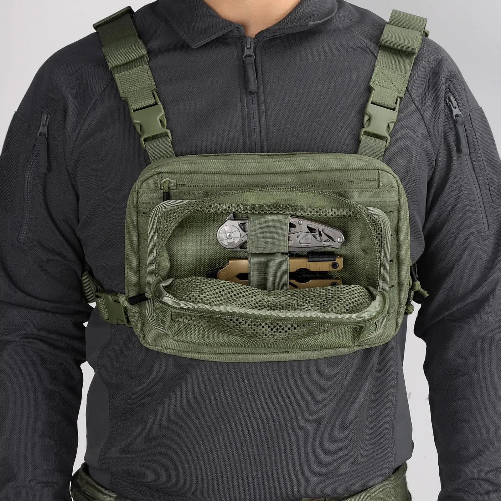 Bolsa táctica de malla con cremallera, organizador de Panel de inserción Modular, bolsillo de almacenamiento EDC con cierre de gancho para accesorios de bolsa de mochila