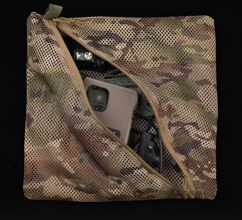 Nombre del producto: bolsa de red de almacenamiento (6x12in) Tamaño del producto: 15*10*1,8 cm Peso neto del producto: 0.051KG Peso bruto del producto: 0.059KG Color del producto: negro, verde, marrón, CP, BKCP, gris El paquete incluye: bolsa táctica