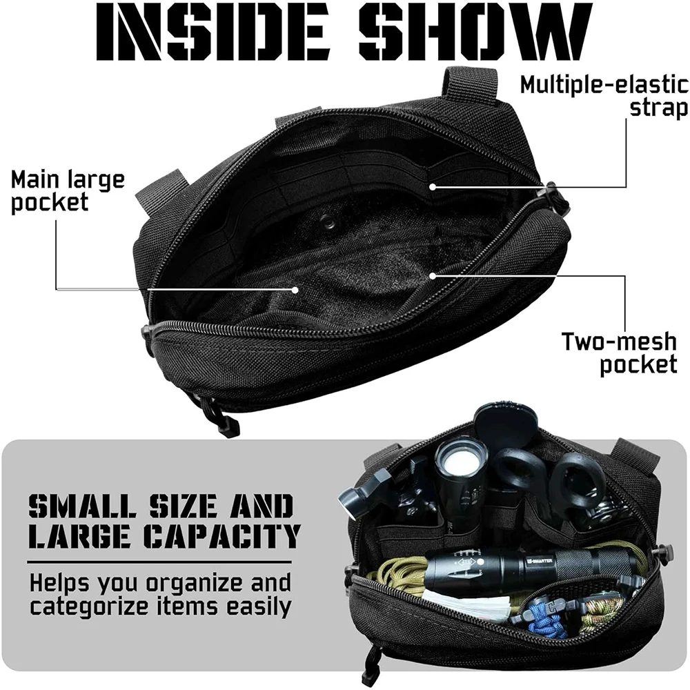 4. 【Características de acceso rápido】 Esta bolsa organizadora táctica se puede rasgar rápidamente en emergencias.El resistente diseño de doble cremallera garantiza un acceso rápido, ahorrándole su valioso tiempo.