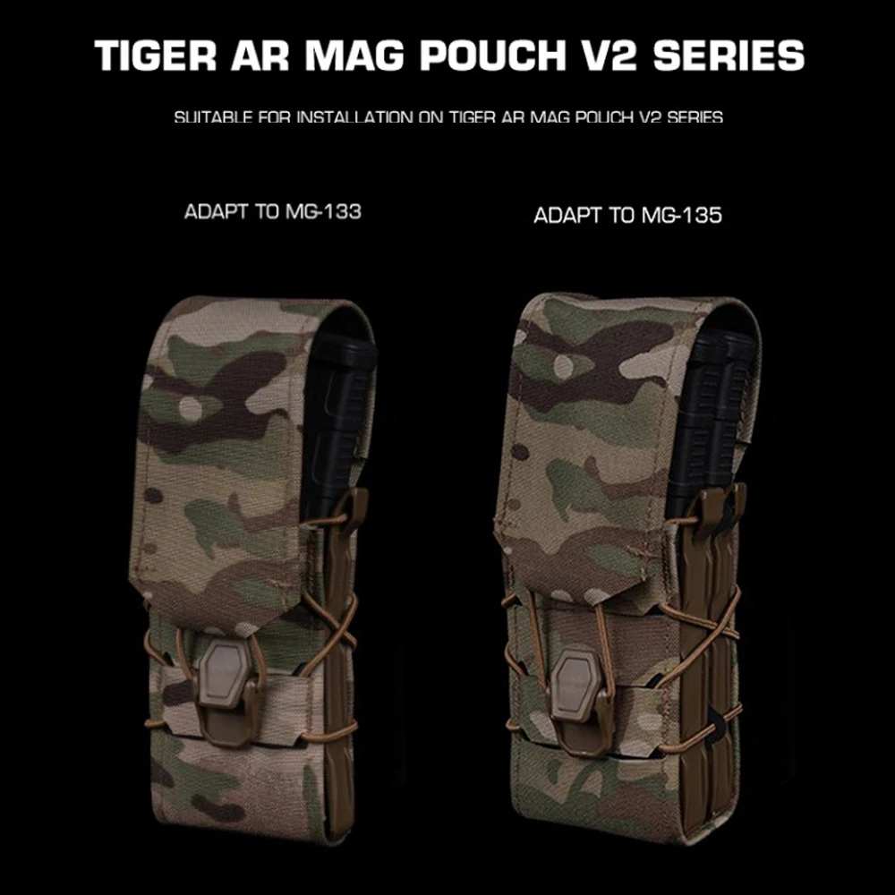 Nombre del producto: Bolsa Mag de tamaño completo Tiger V2 Número de artículo.:MG-133 Tamaño del producto: 15*10,5*5CM Peso neto del producto: 0,06 KG Peso bruto del producto: 0,114 kg. Color del producto: MC/MCBK/verde Ranger/negro mate/marrón coyote/gris lobo Material principal: Cordura Escena aplicable: caza, deportes al aire libre y otros accesorios tácticos de atletismo Airsoft CS, etc.