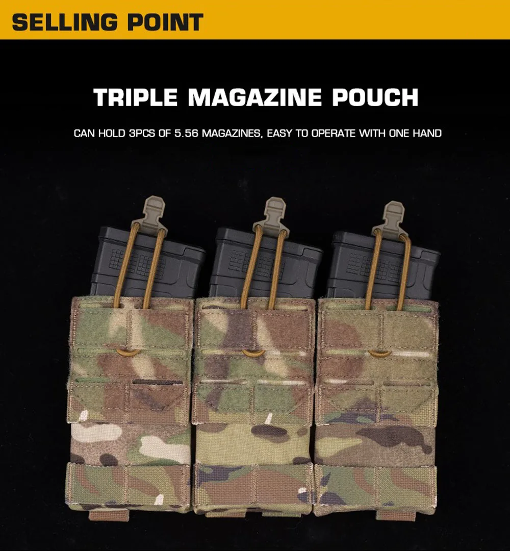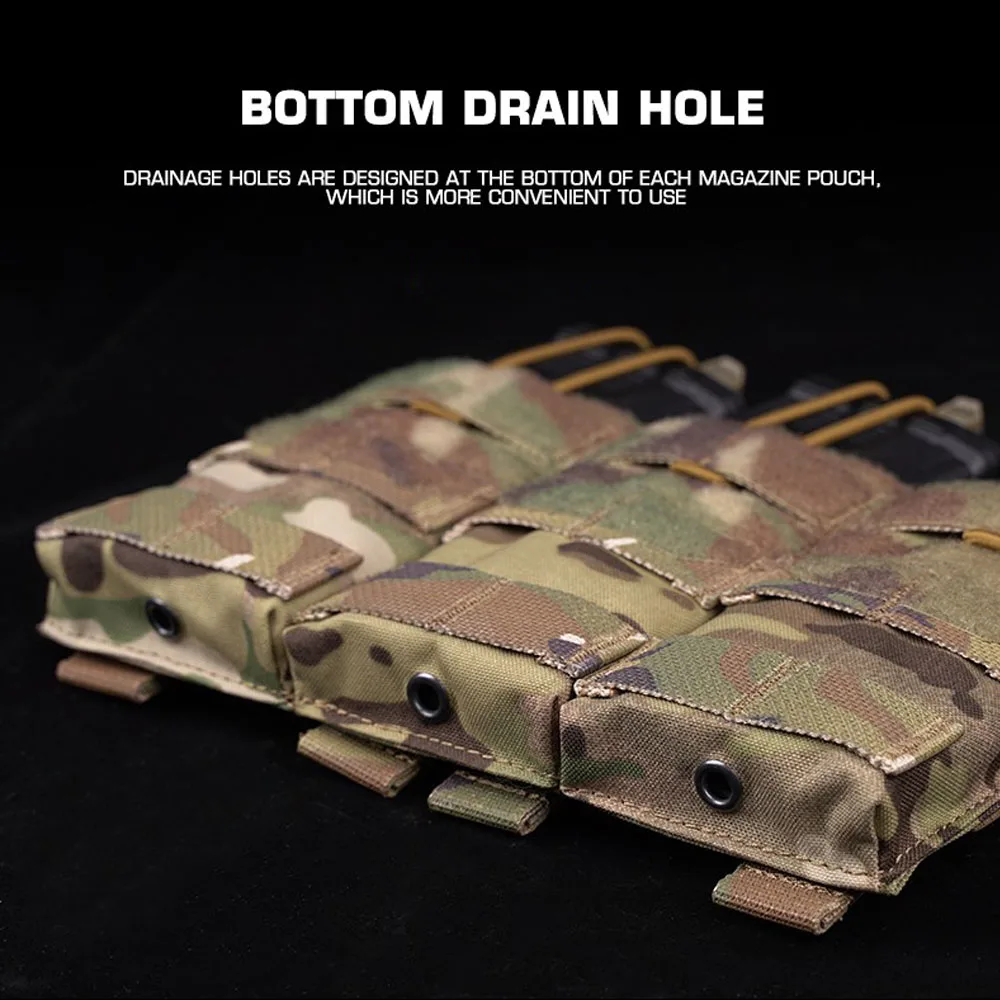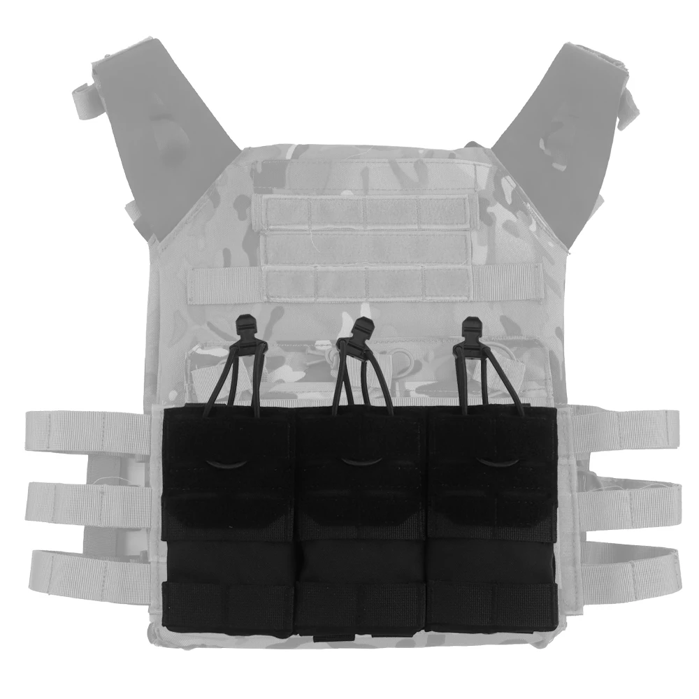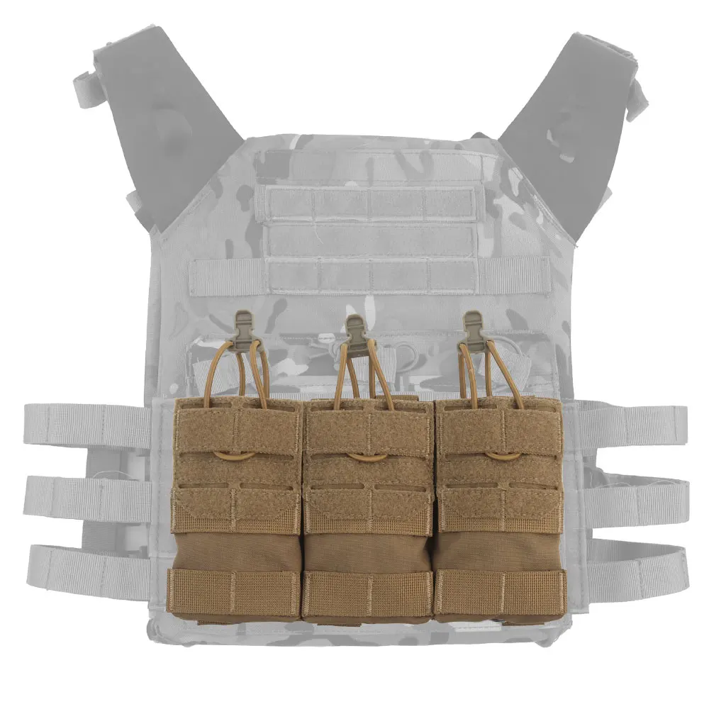 Bolsa táctica MOLLE 5,56, bolsa triple para revistas, bolsa elástica de retención para caza Airsoft M4 Mag, portaplacas K19, tarjetas individuales delanteras AG