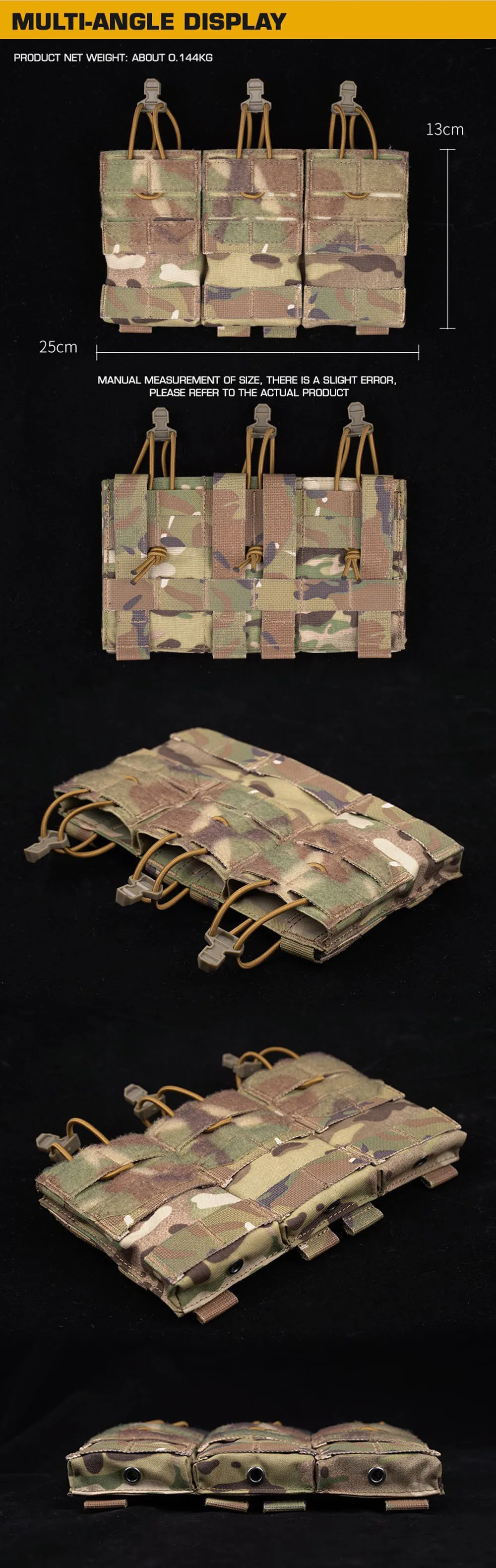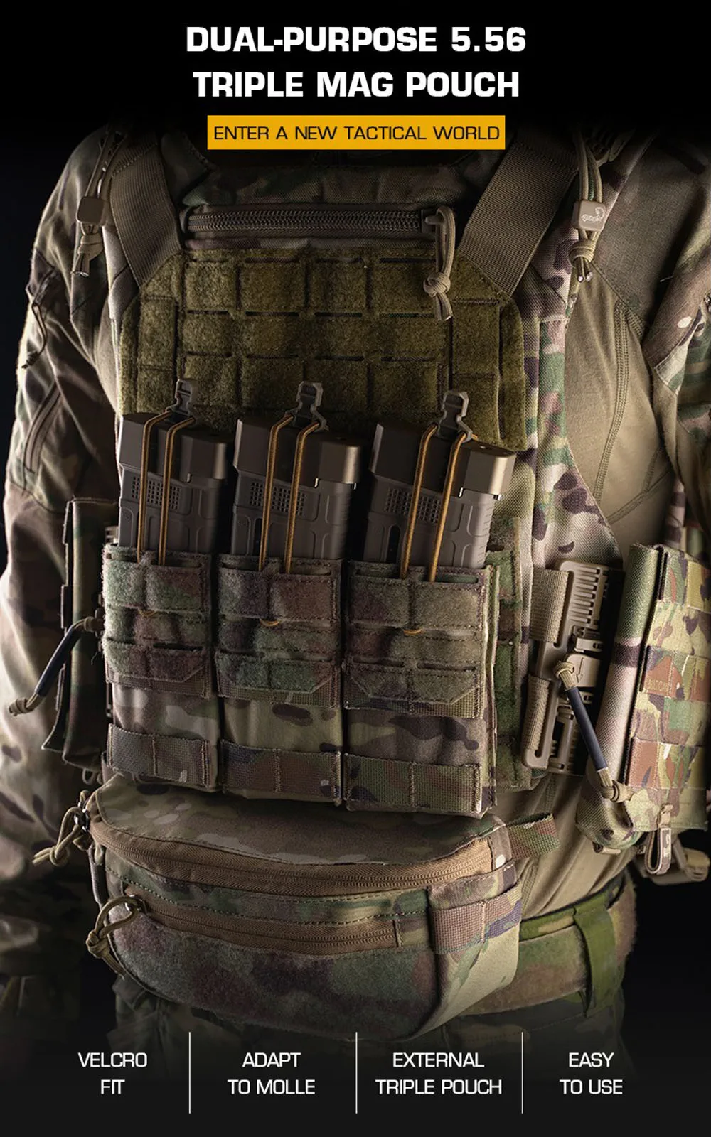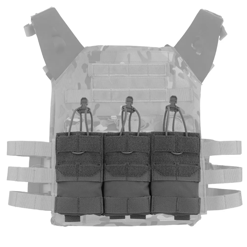Bolsa táctica MOLLE 5,56, bolsa triple para revistas, bolsa elástica de retención para caza Airsoft M4 Mag, portaplacas K19, tarjetas individuales delanteras AG