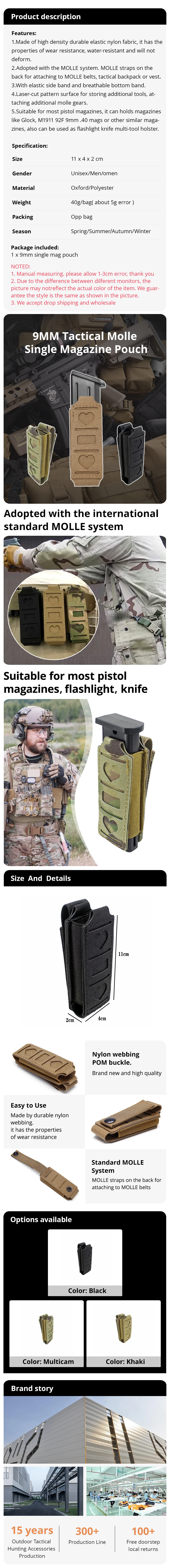 5. Adecuado para la mayoría de cargadores de pistola, puede contener cargadores como Glock, M1911 92F 9 mm.40 cargadores u otras cargadores similares, también se puede usar como funda multiherramienta para cuchillos con linterna.