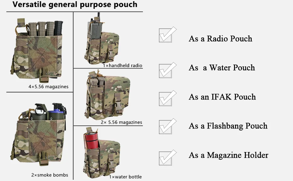 Bolsa táctica MOLLE Admin y bolsa de torniquete, bolsa versátil de uso General con bolsa TQ para chaleco Airsoft, cinturón de servicio