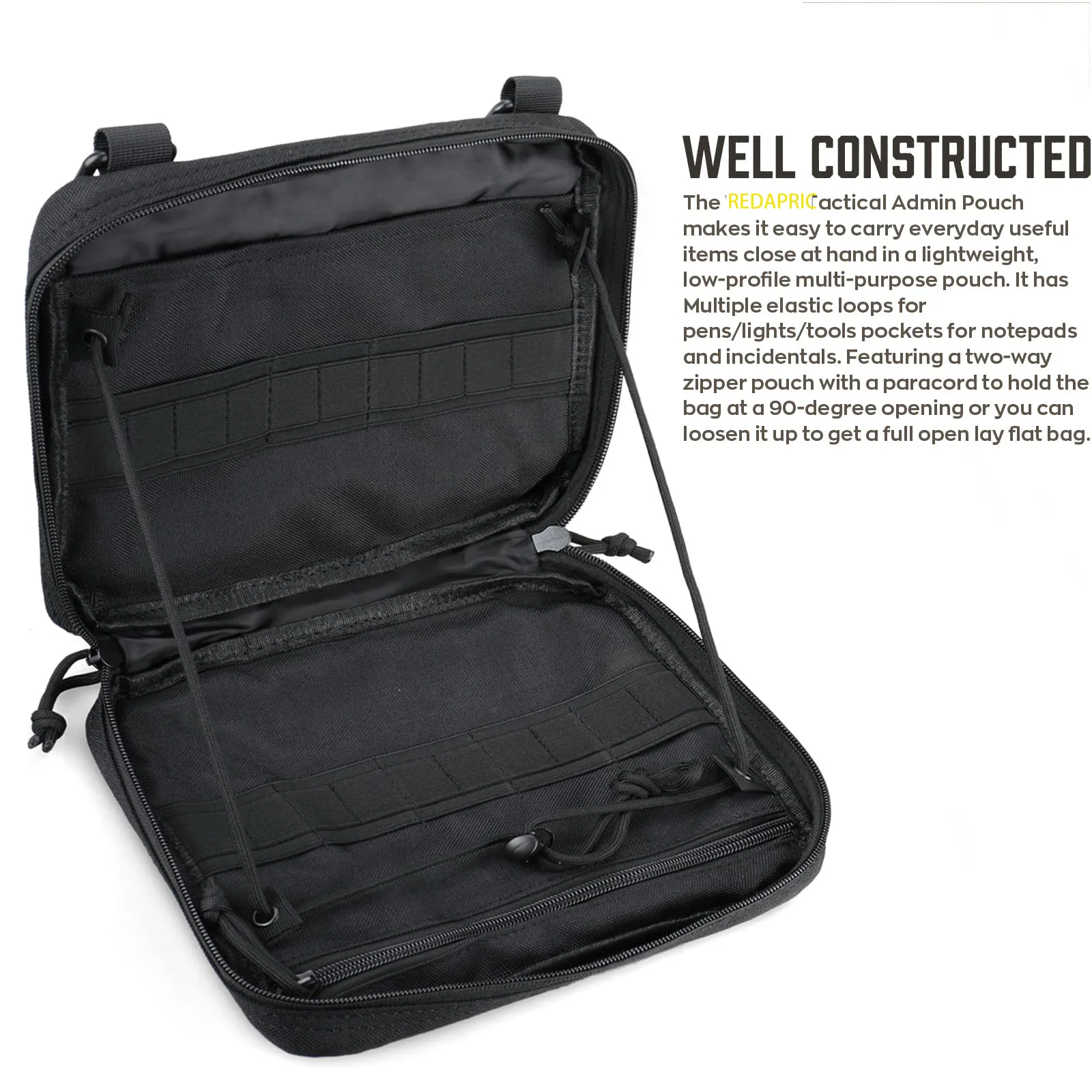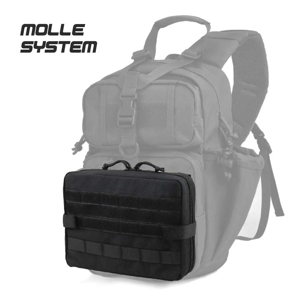 GRAN CONSTRUCCIÓN ORGANIZADA COMO TAMAÑO DE IPAD: El portaherramientas tiene un compartimento con cremallera y un compartimento auxiliar grande.Mucha área de almacenamiento de elásticos para guardar equipos le permite insertar y sostener una gran cantidad de herramientas.Ideal para un aparejo de pecho táctico y complemento para Gearslinger.