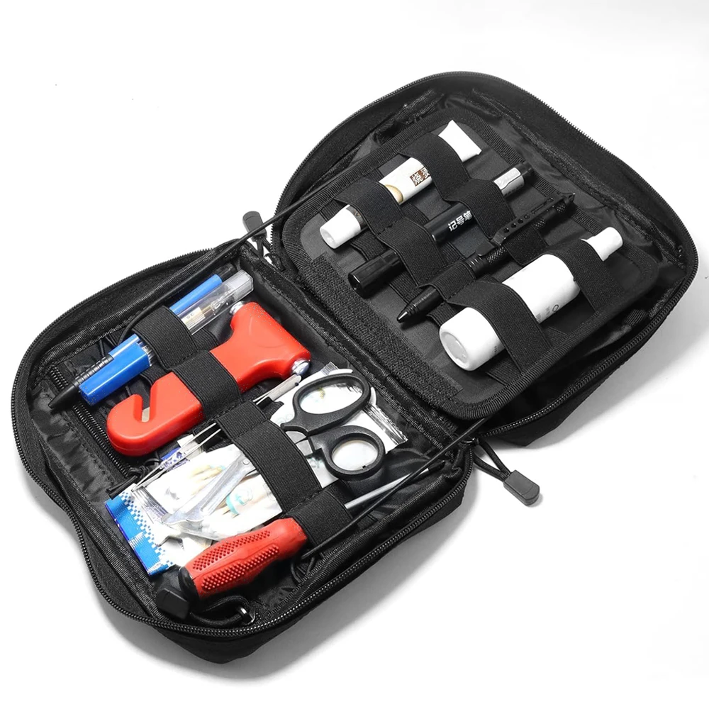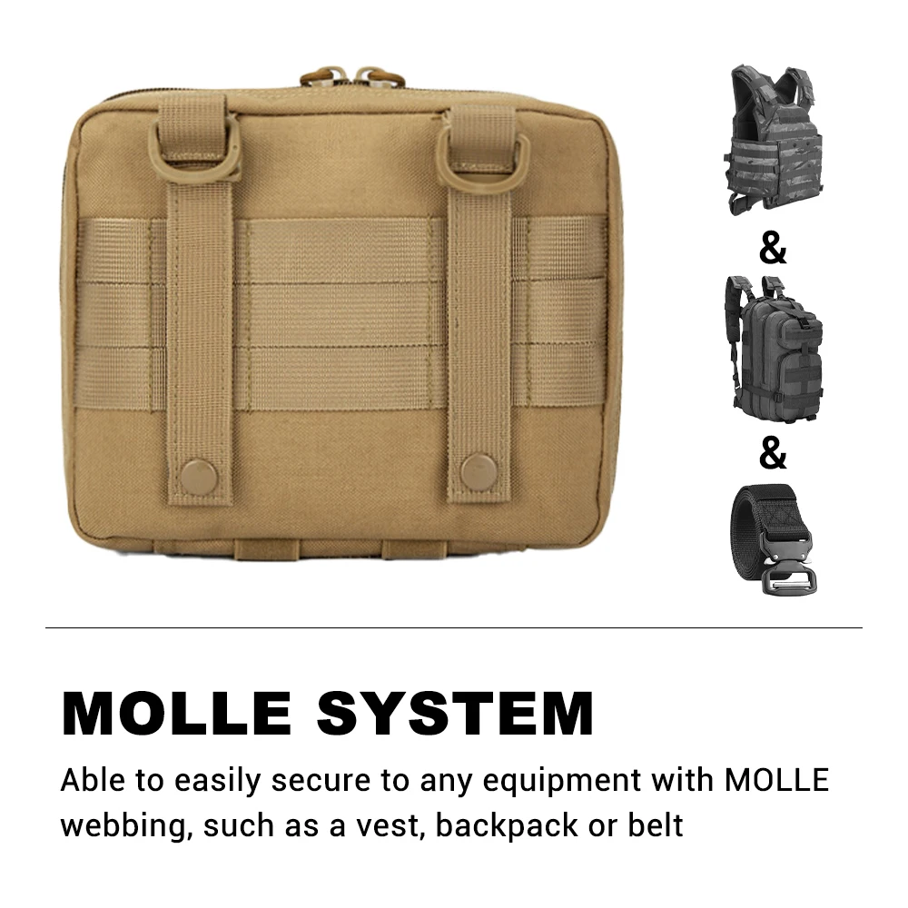 La bolsa de primeros auxilios médica EMT está equipada con un sistema MOLLE, que permite fijarla a cinturones de combate, mochilas, chalecos tácticos, paneles MOLLE para vehículos u otras plataformas MOLLE.Es adecuado para actividades como ciclismo, camping, senderismo, caza y pesca.En actividades al aire libre, se debe dar prioridad a la seguridad.Todo el equipo necesario para exteriores debe prepararse antes de la salida.Esperamos que nuestra bolsa organizadora médica se convierta en su mejor opción para aventuras al aire libre.