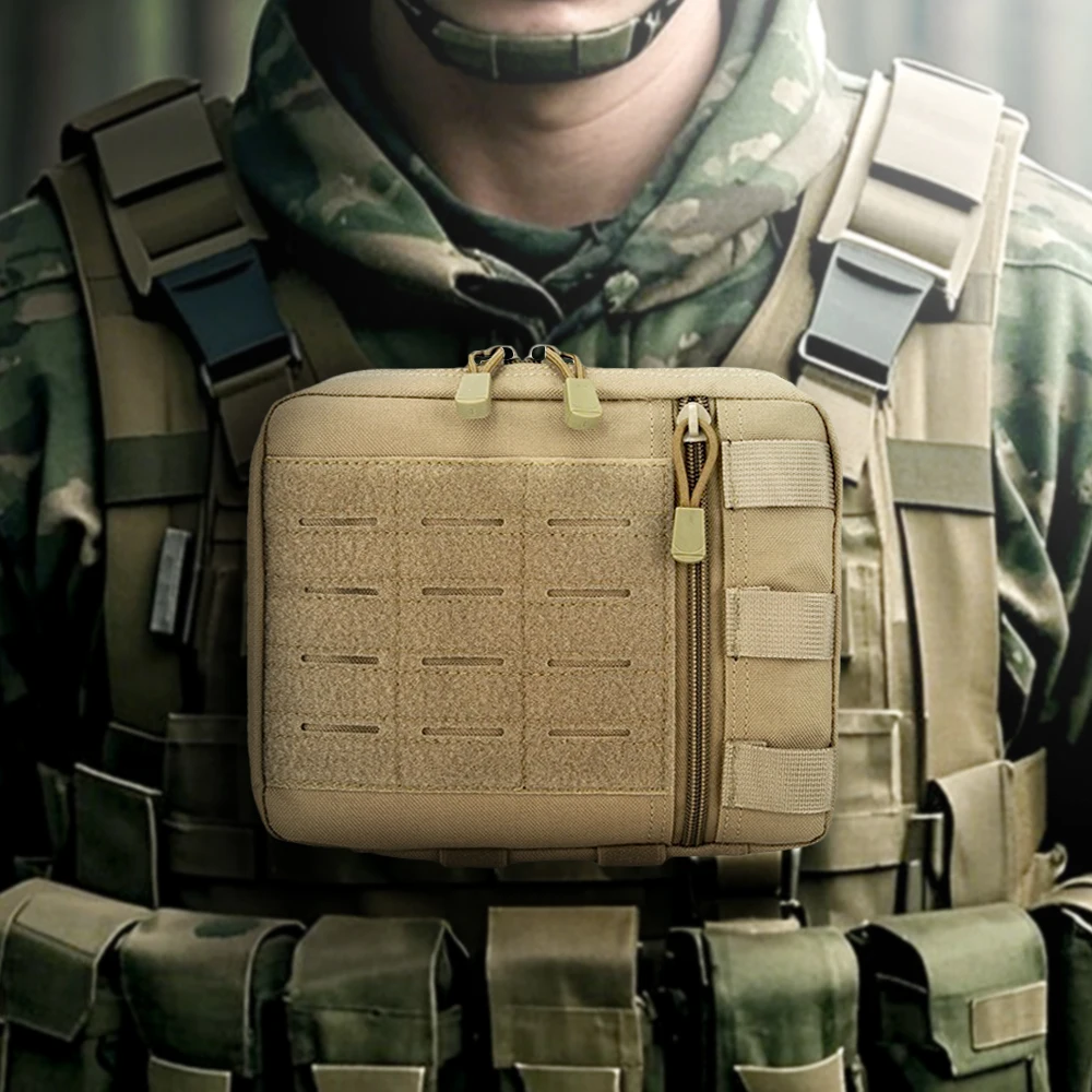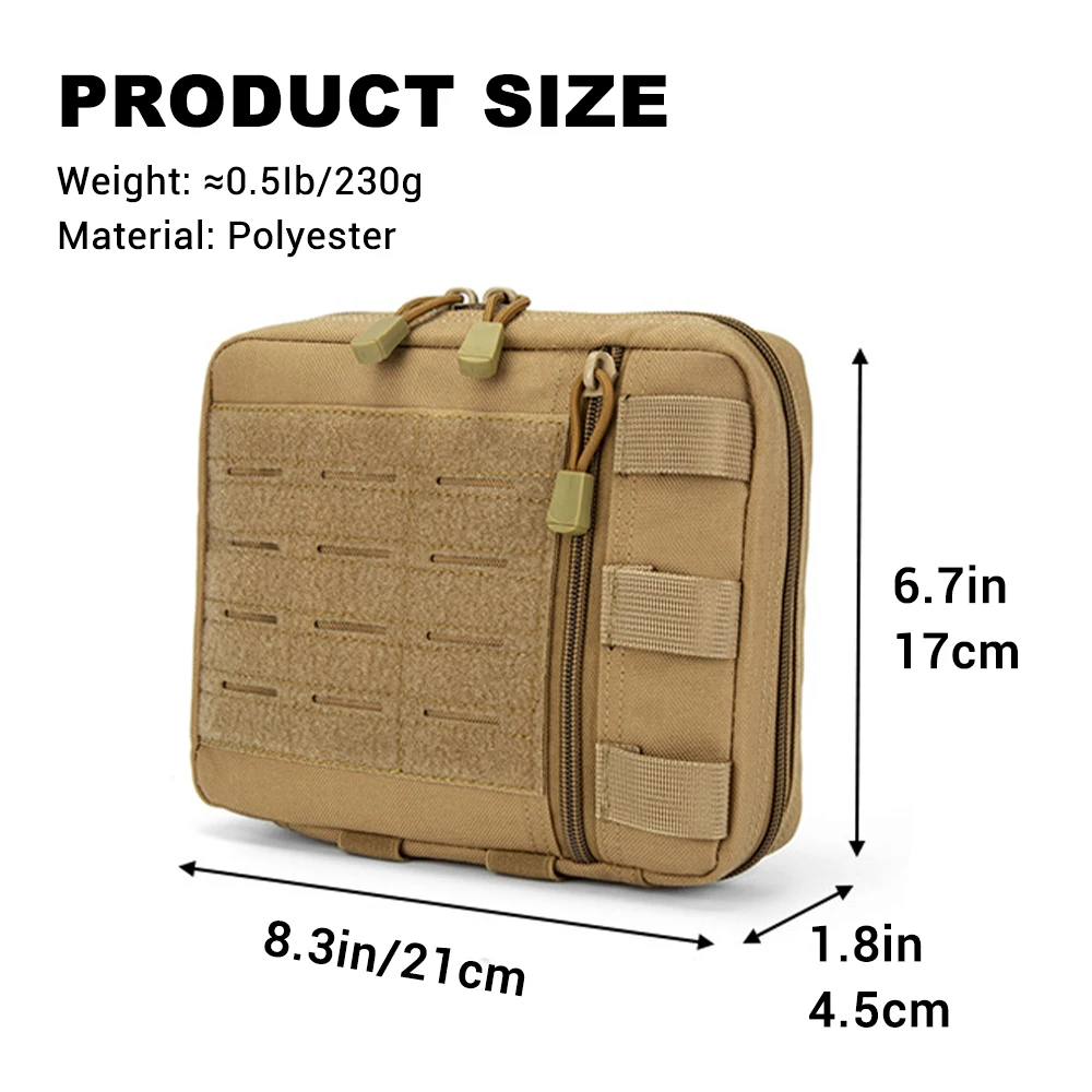 La bolsa táctica Molle para administración cuenta con múltiples compartimentos auxiliares y correas elásticas, junto con un panel de almacenamiento extraíble.Las amplias áreas y compartimentos de almacenamiento elásticos pueden acomodar fácilmente artículos como marcadores, luces LED, lupas, medicamentos, linternas, herramientas múltiples, cuchillos, botiquines de primeros auxilios, bridas y otros elementos esenciales diarios, manteniéndolos de forma segura en su lugar para acceso rápido.