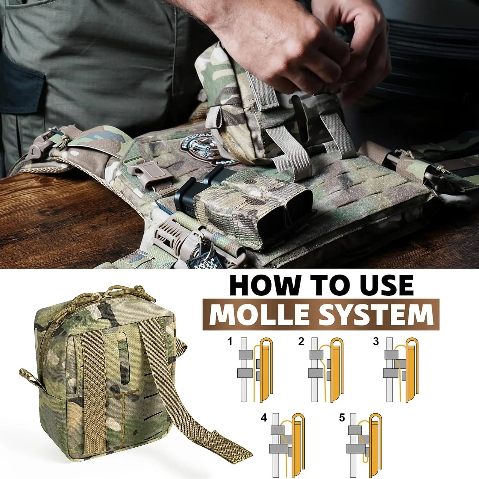 Bolsa táctica Molle Admin, pequeñas bolsas GP de uso General con Panel de bucle para chaleco, cinturones para pistola, mochila como bolsa de almacenamiento expandida