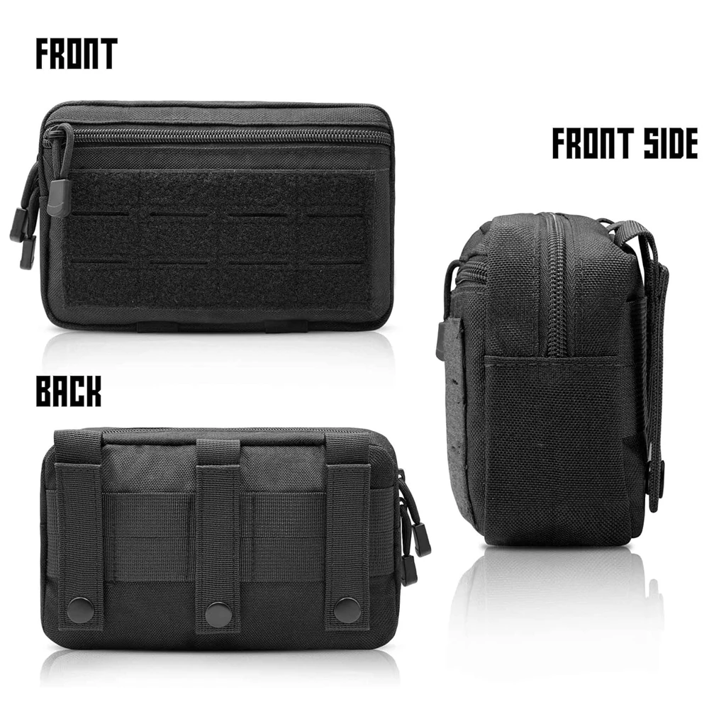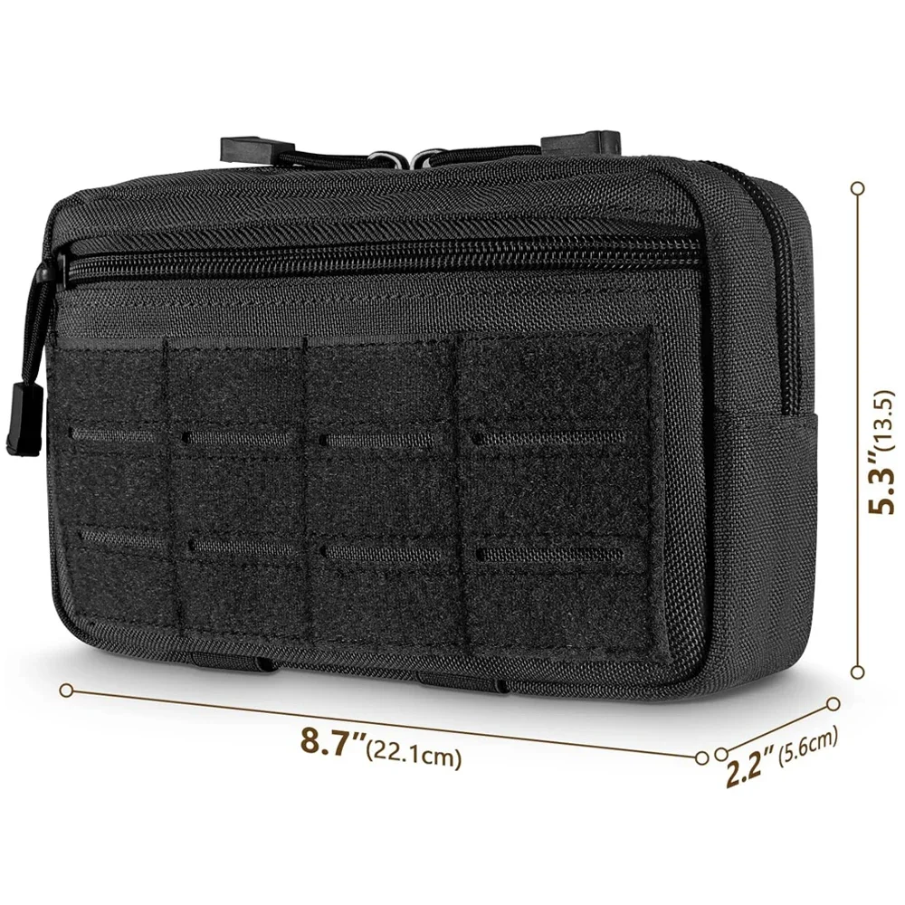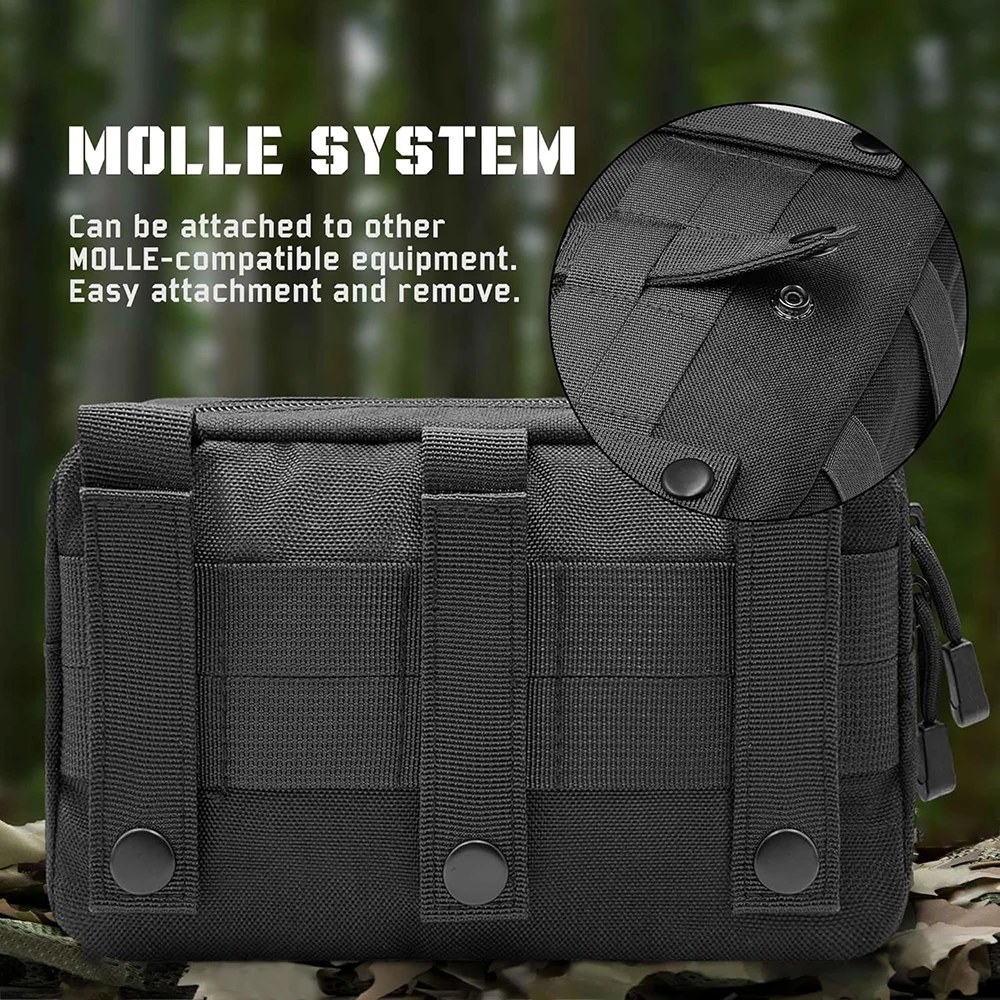 Tres correas verticales y broches de metal en la parte posterior le permiten agregar la bolsa modular a una mochila, chaleco de combate, cinturón u otro equipo molle como una bolsa exterior adicional, o llevarla como una bolsa normal para asegurar los equipos esenciales.